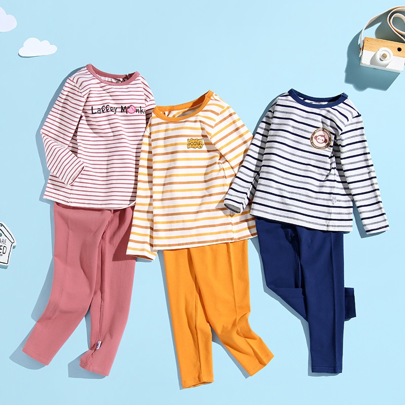 Children's Lycra Cotton Autumn Clothes And Autumn Trousers Suits Boys'Home Clothes Medium And Large Children's Underwear Suits Girls'Pajamas