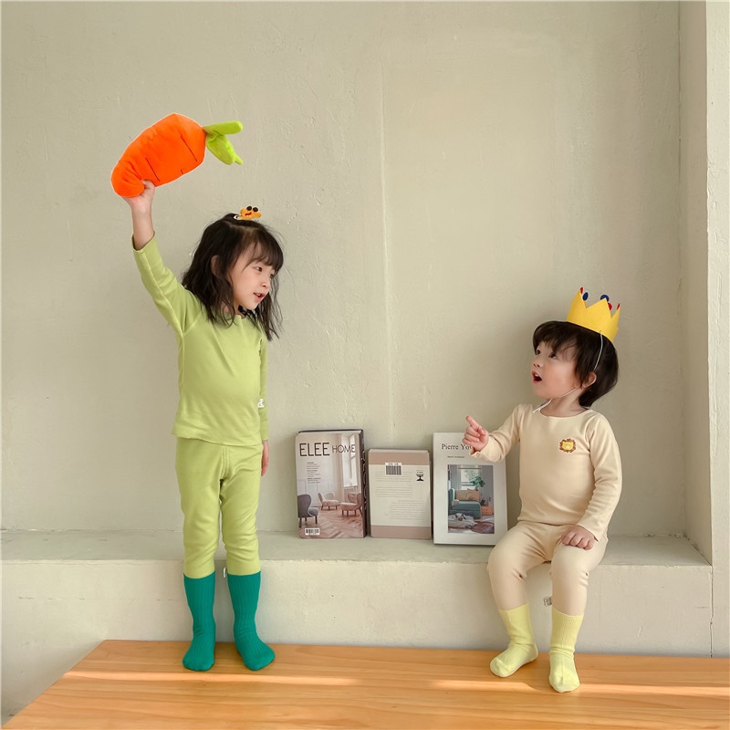 Children's German Velvet Autumn Clothes And Autumn Trousers Seamless Pajamas Girls Underwear Set Boys Baby Boneless Warm Home Clothes