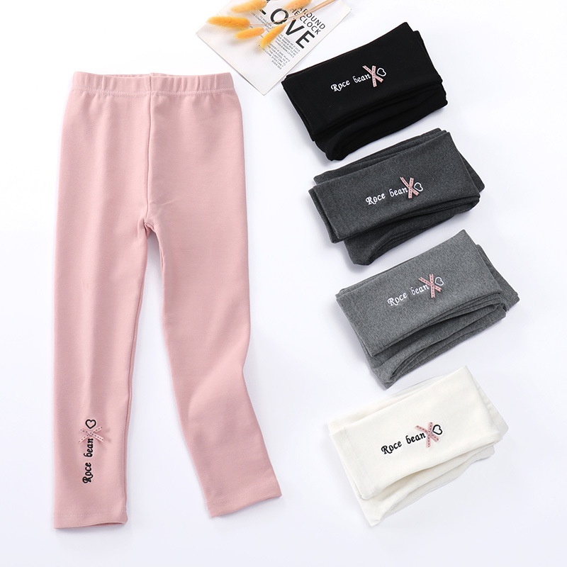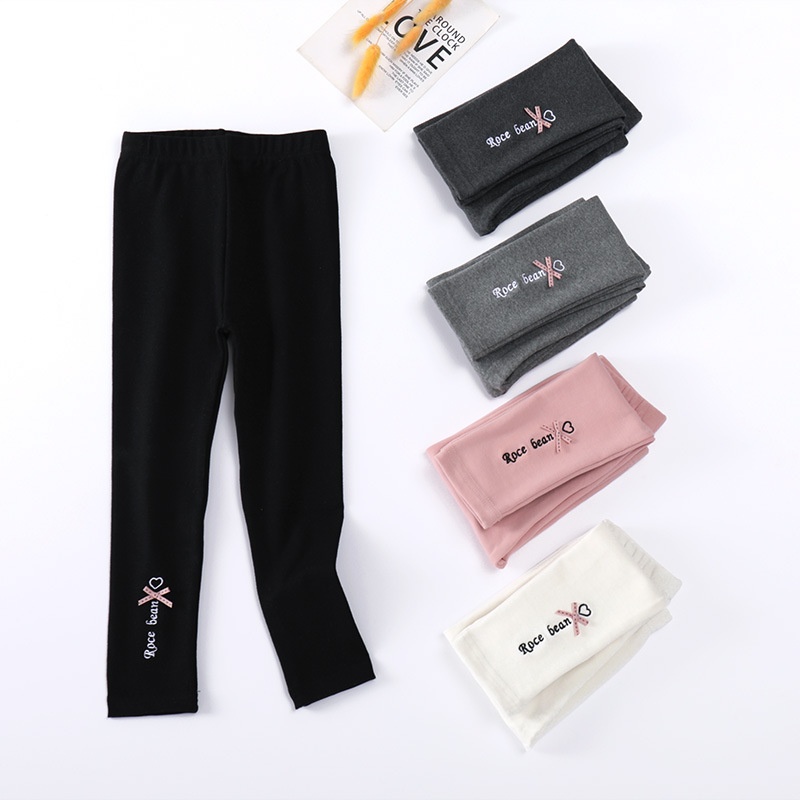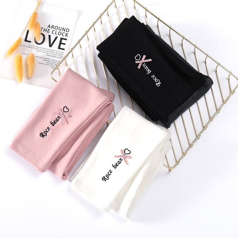 Girls Spring Leggings Korean Baby Bow Knitted Cotton Pants Girls Outerwear Stretch Pants Solid Color