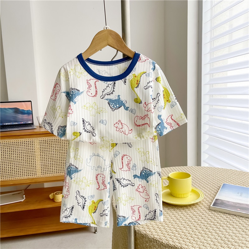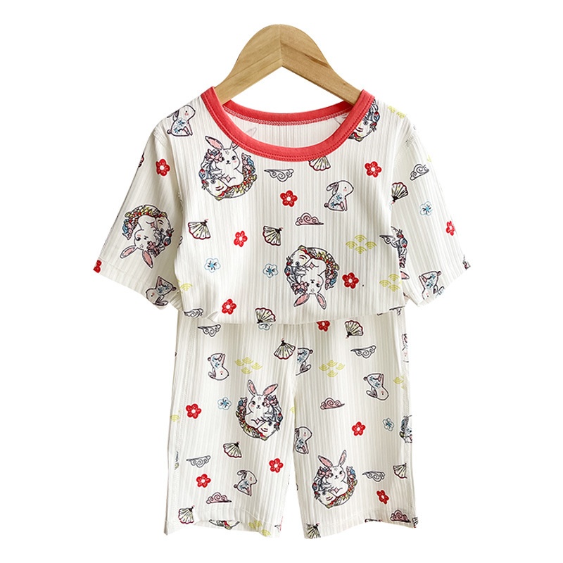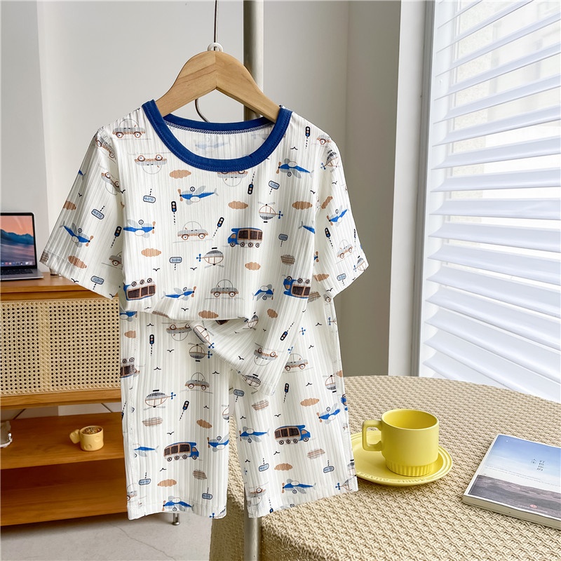 Children's Home Clothes Suit Summer Boys Three-quarter Sleeve Air-conditioning Clothes Girls Baby Casual Ice-feeling Trousers Pajamas Suit