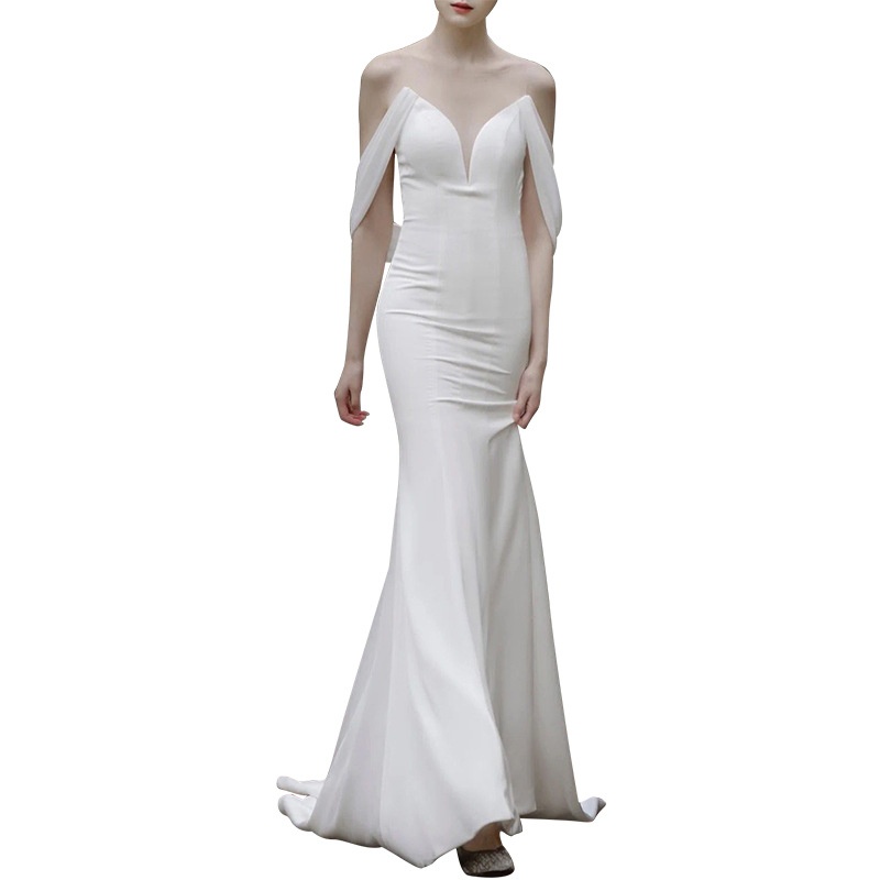 French Satin Travel Photography Light Wedding Dress Fishtail Bride Simple Waist Slimming One Shoulder Evening Dress Female