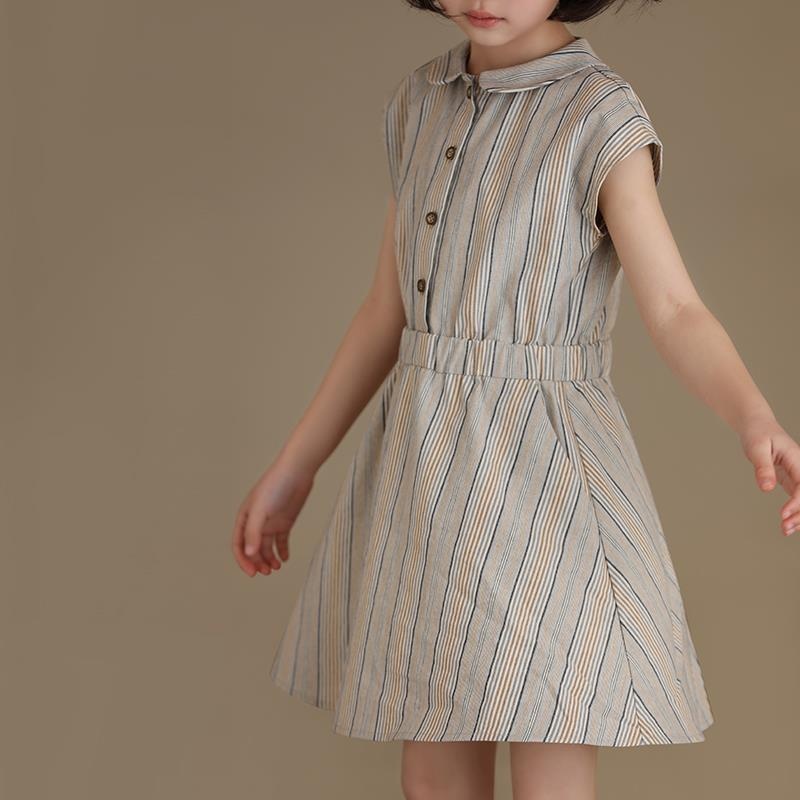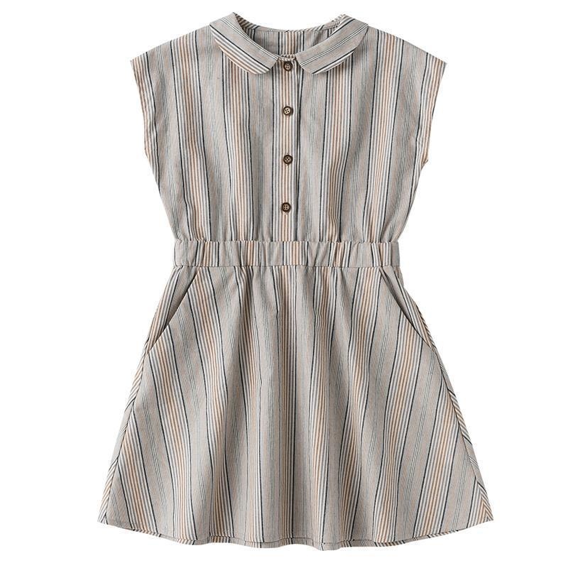 Children's Clothing Summer Products Girls Children's Pure Cotton Temperament Waist Sleeveless Shirt Striped Dress Western Style