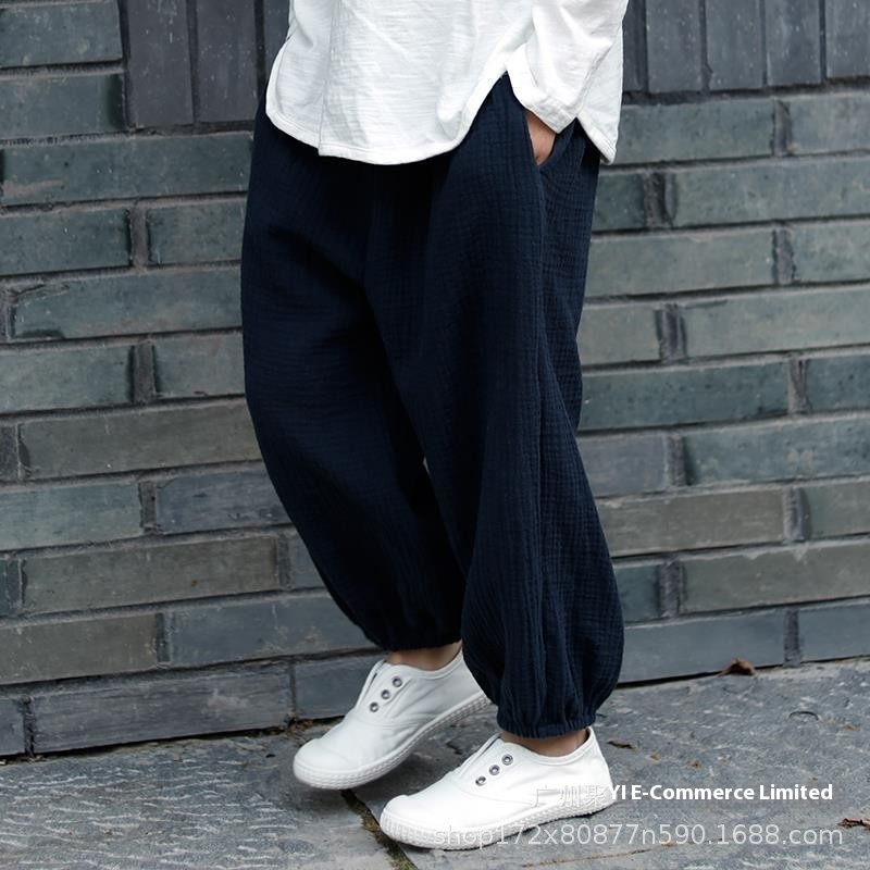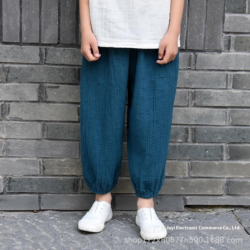 Cotton And Linen Children's Clothing Boys And Girls Literary Gauze Bloomers Solid Color Thin Loose Summer Anti-mosquito Pants Casual Pants