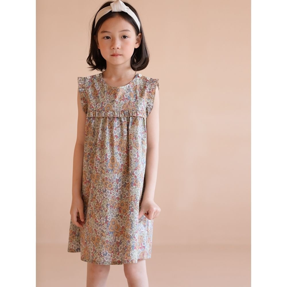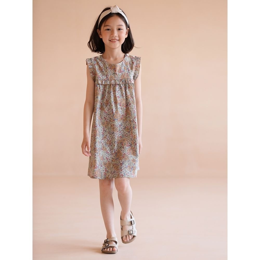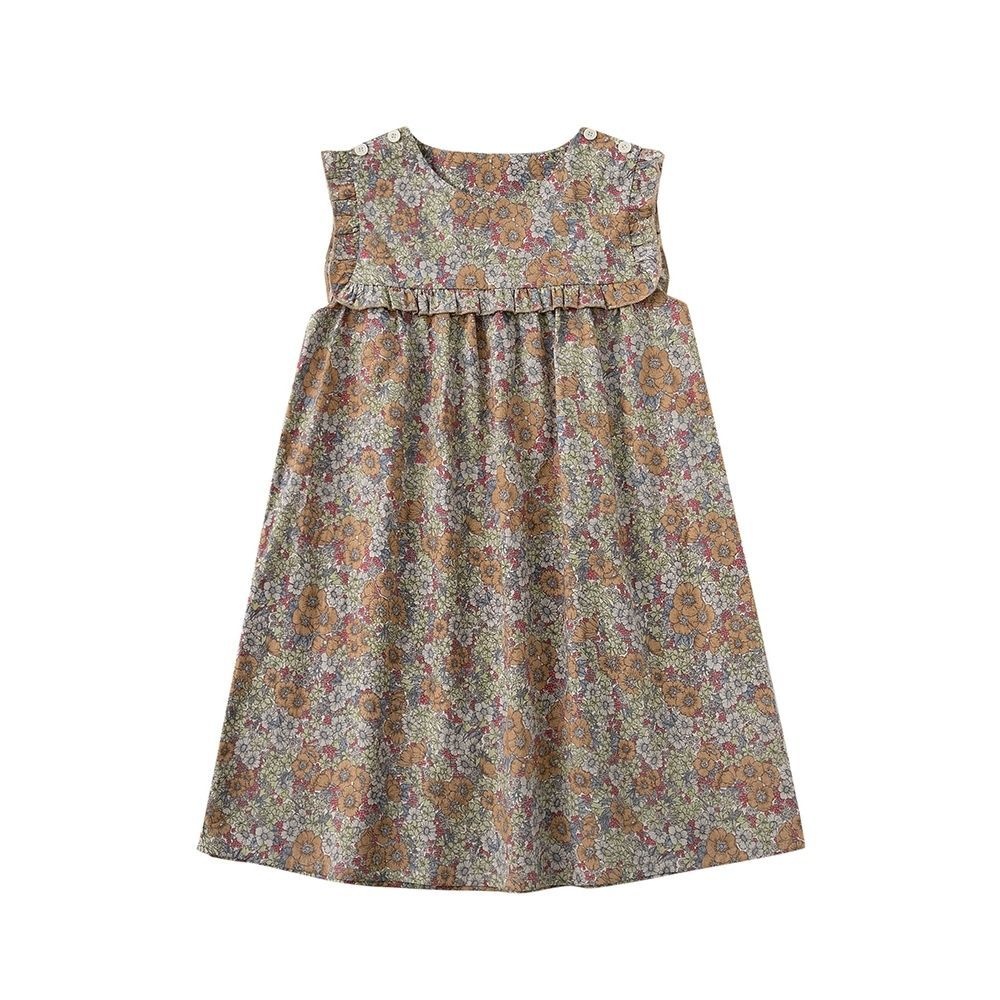 Children's Clothing Summer Style Girls Pure Cotton Japanese Style Ruffled Floral Dress One Piece Sleeveless Vest Dress Simple Retro