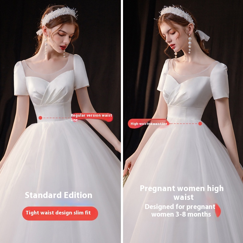 Wedding Dress For Pregnant Women,Bride,High Waist,Belly-covering Satin Wedding Dress,Temperament Wedding Dress