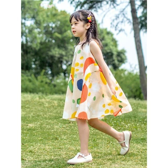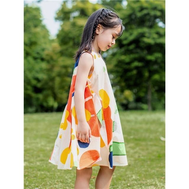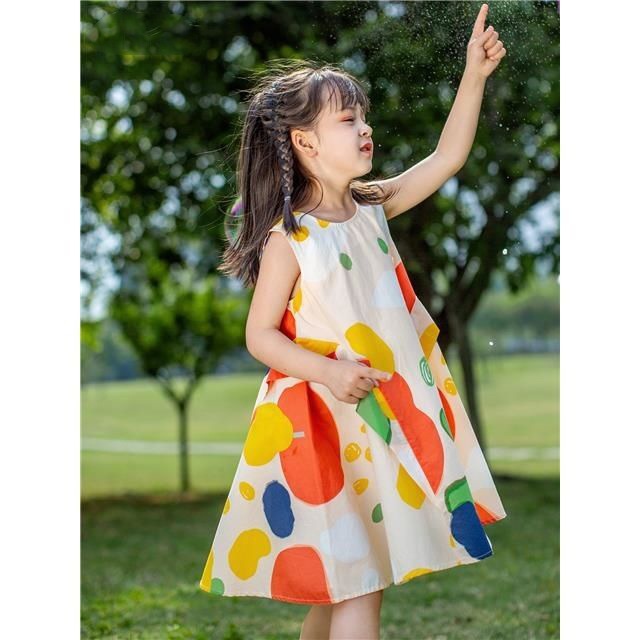 Girls Dress Summer Style Fashionable Print Contrast Color Pure Cotton Sleeveless Children's Vest Dress Thin Style