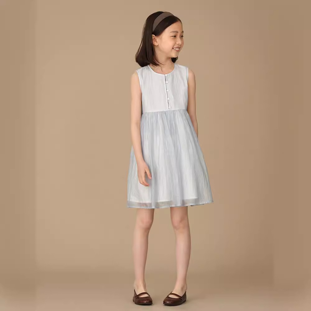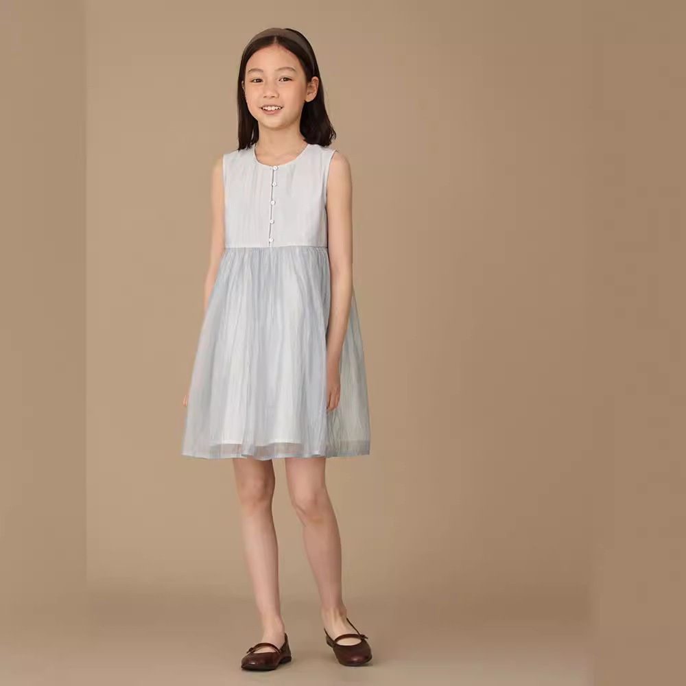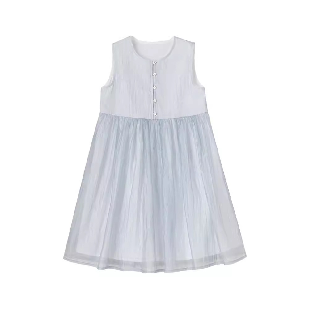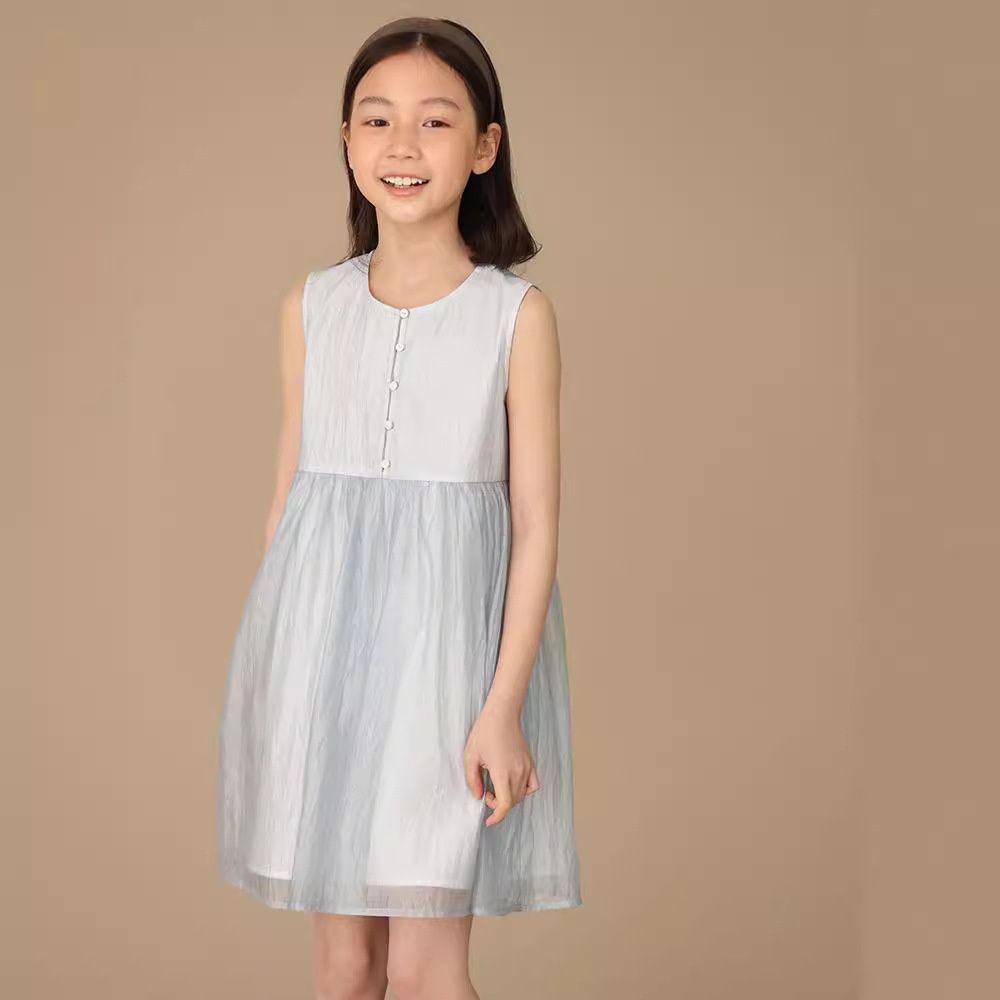 Children's Clothing Summer High-end Sky Blue Fragrant Cloud Wrinkled Pearl Quicksand Fairy Dress Korean Princess Dress