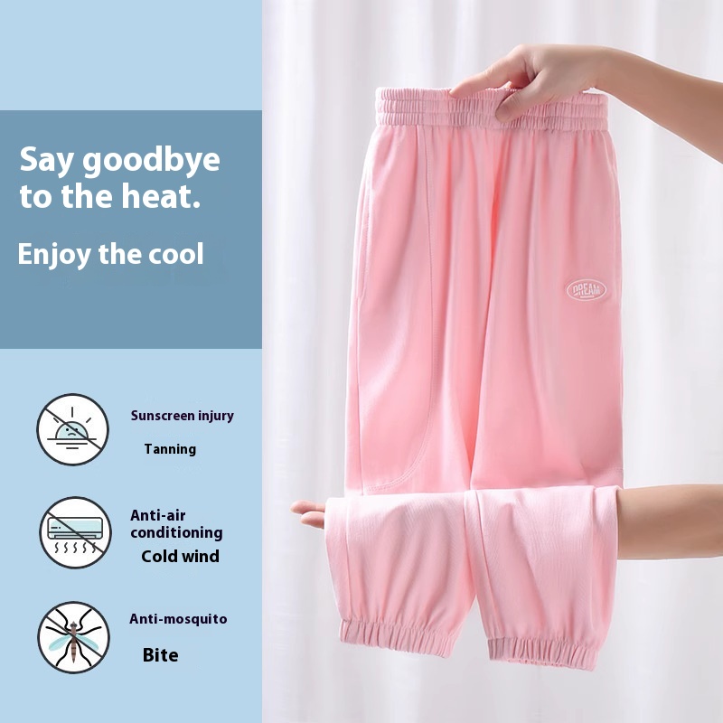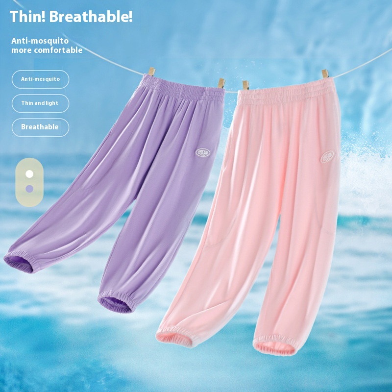 Girls Summer Ice Silk Pants Outer Wear Thin Big Children Sports Pants Summer Loose Children's Anti-mosquito Pants