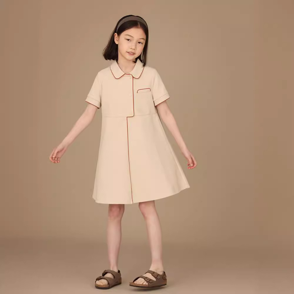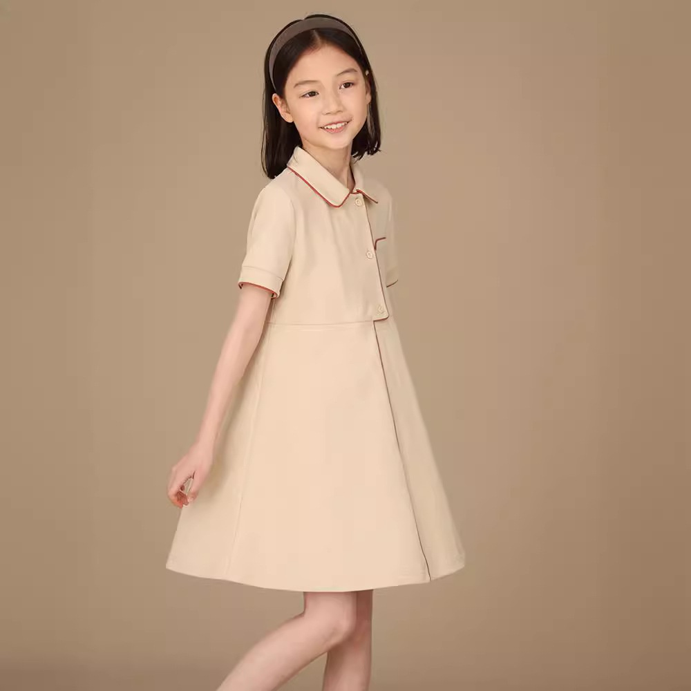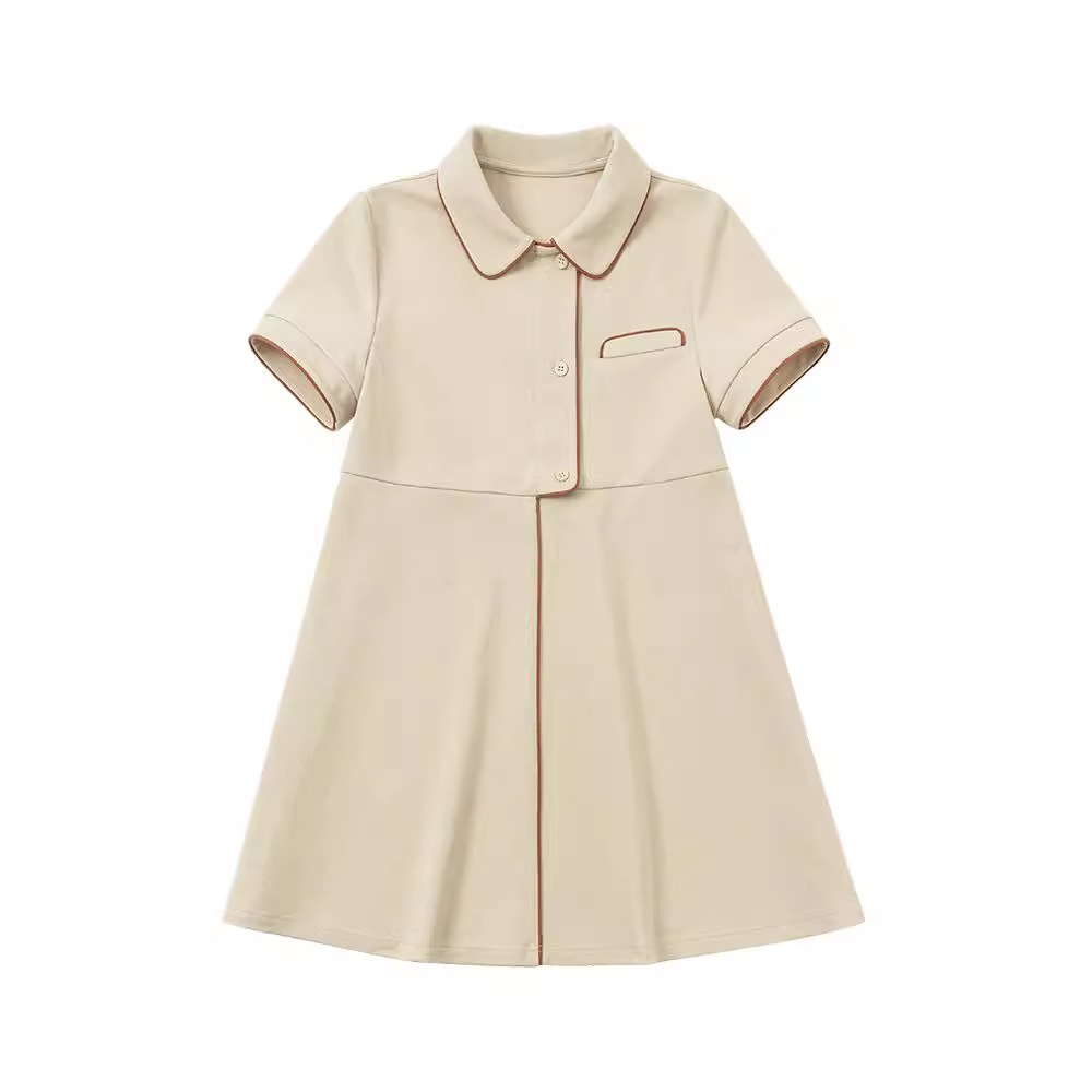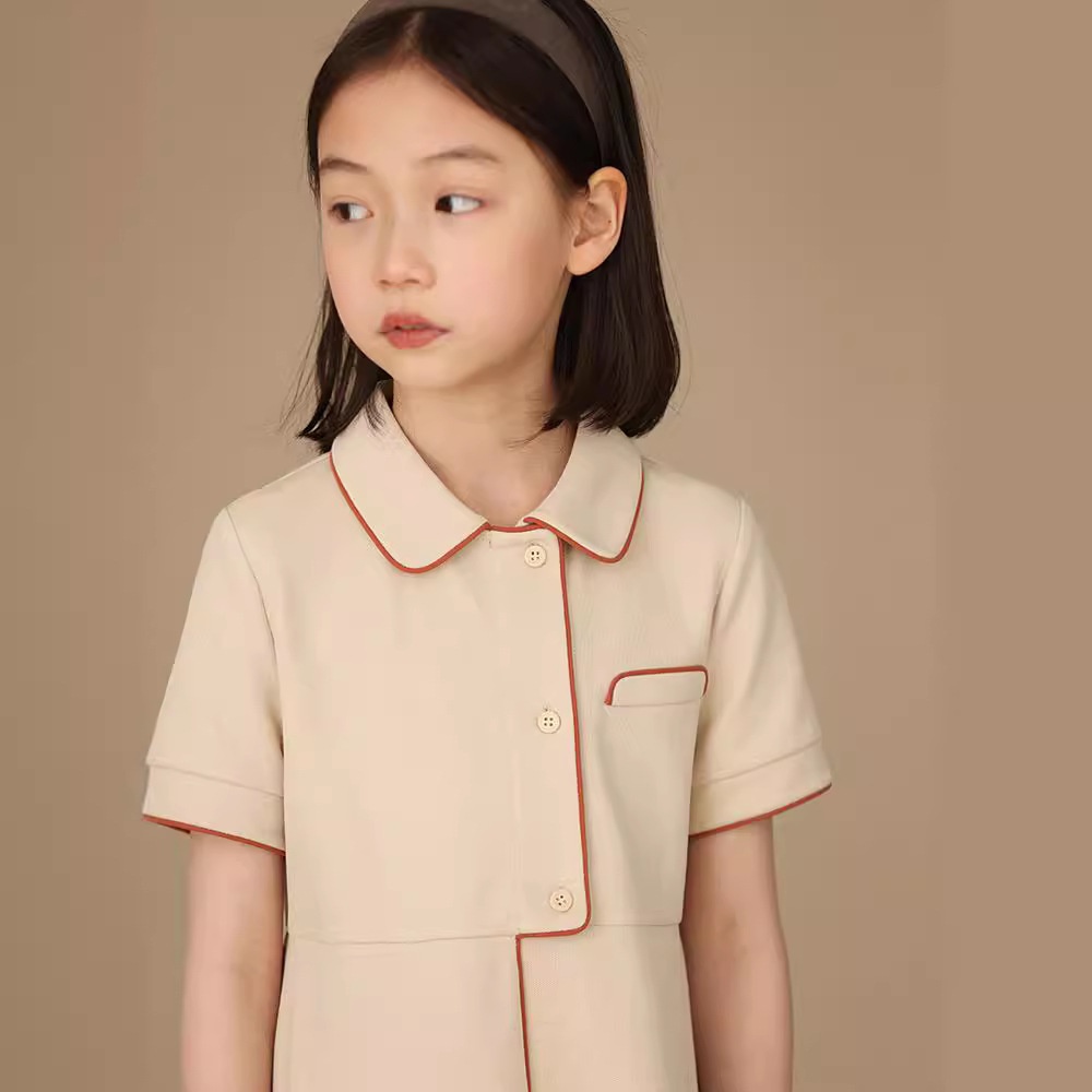 Children's Clothing Summer Products College Style Asymmetrical Placket Girls Polo Collar Casual Short-sleeved Dress