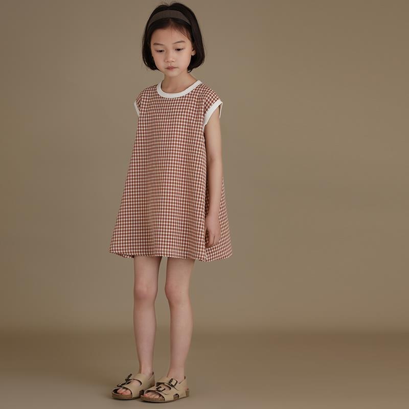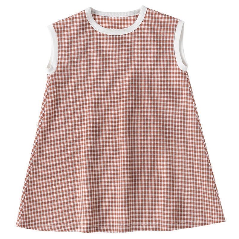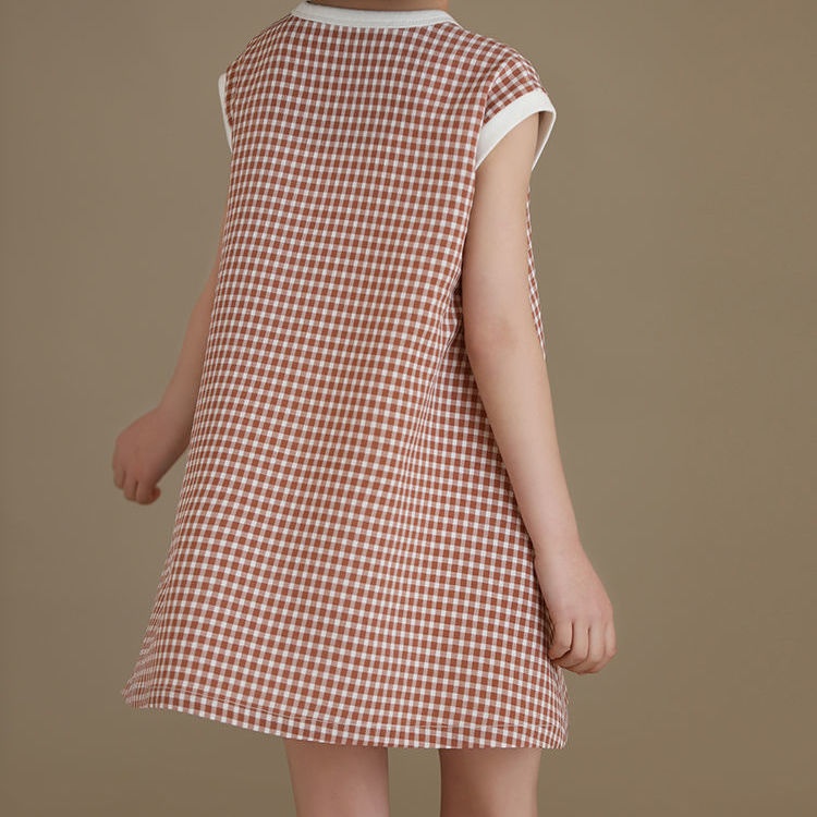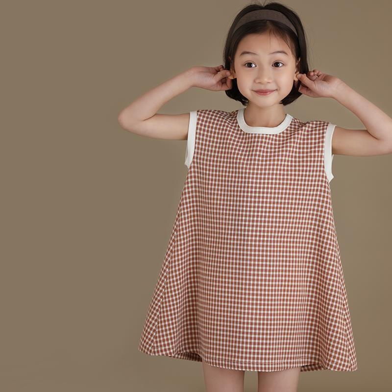 Children's Clothing Spring And Summer Arrivals Girls Children's Parent-child Style Japanese Style Contrasting Color Collar Plaid Sleeveless Vest Baby Dress