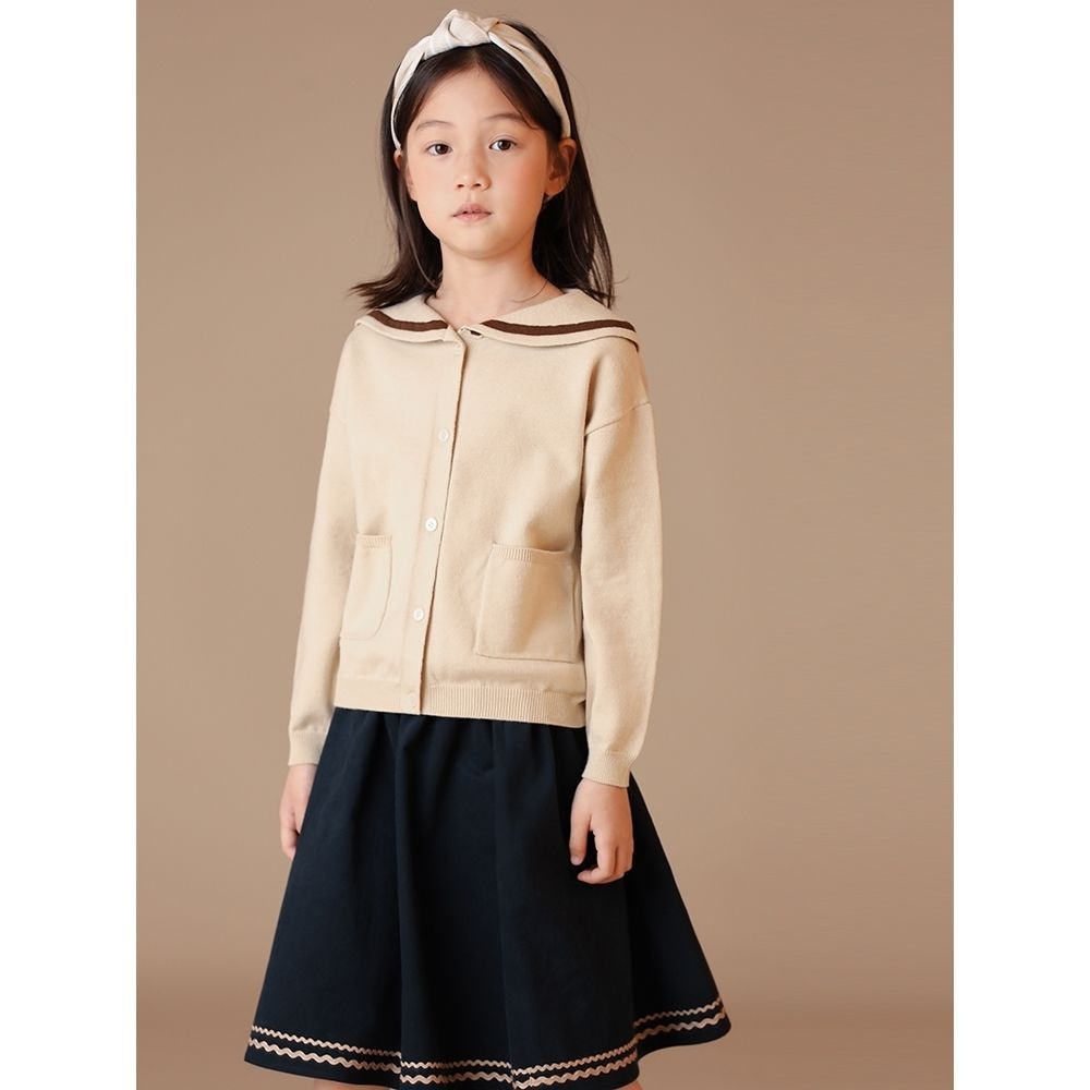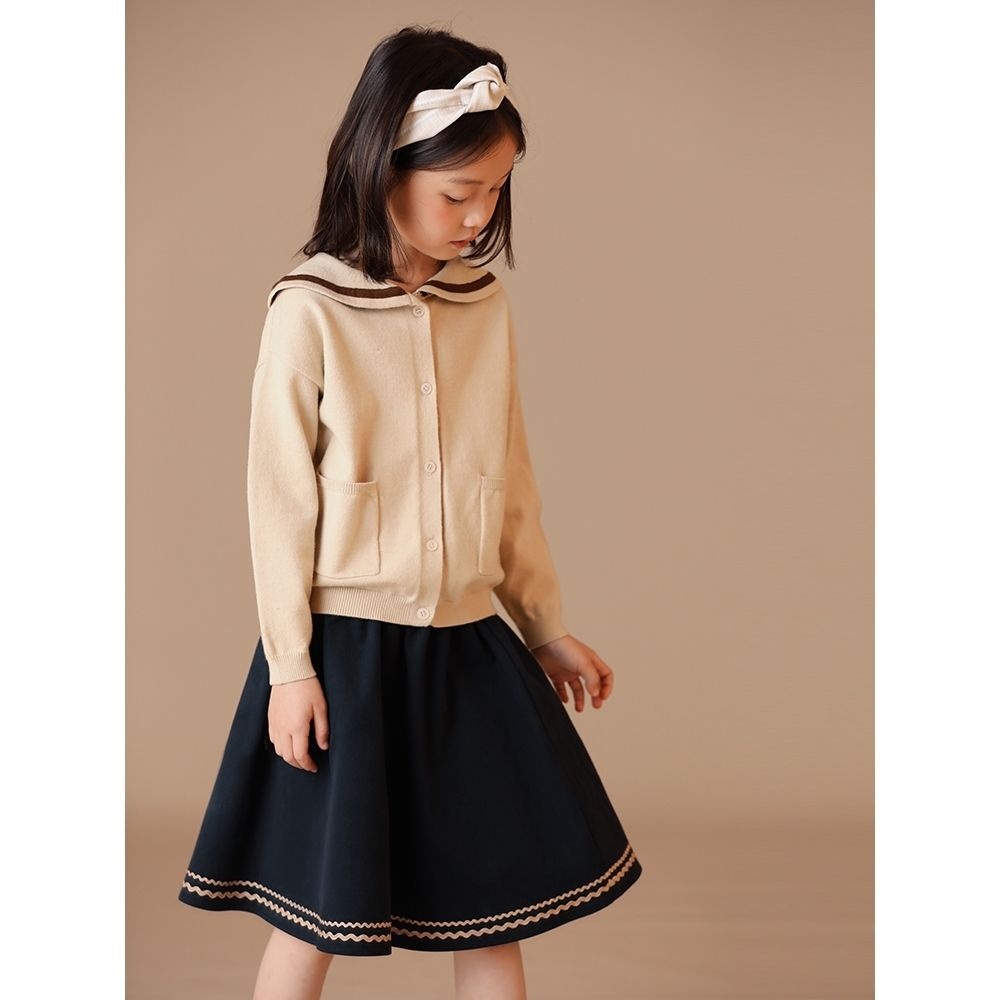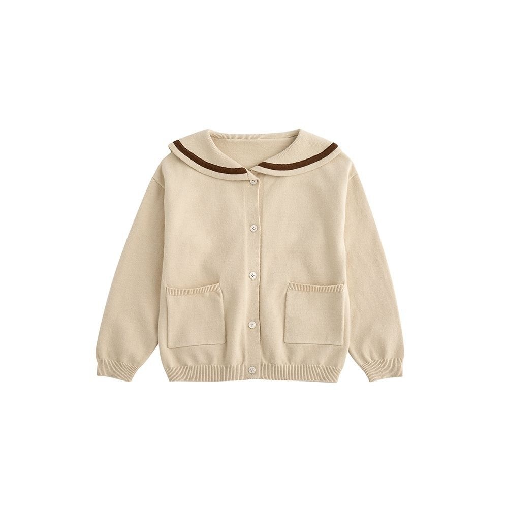 Children's Clothing Autumn Arrival Girls'College Style Sweater Navy Collar Color Matching Pocket Cotton Knitted Cardigan Jacket Spring