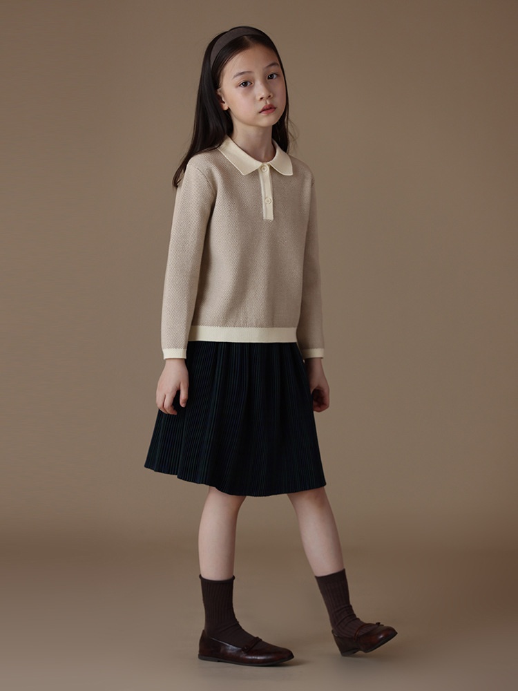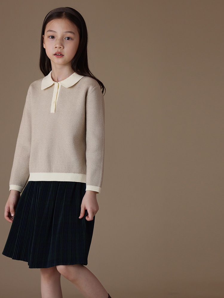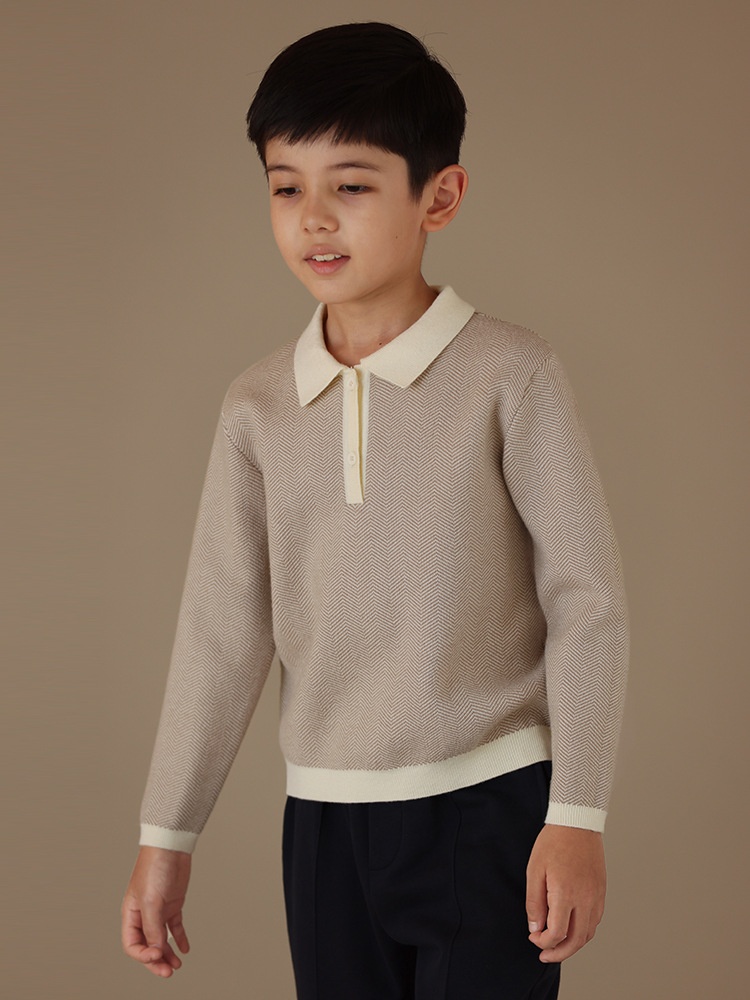 Children's Clothing Autumn Arrival Children's Herringbone Contrast Color Lapel Sweater Parent-child Casual Knitted Bottoming Top