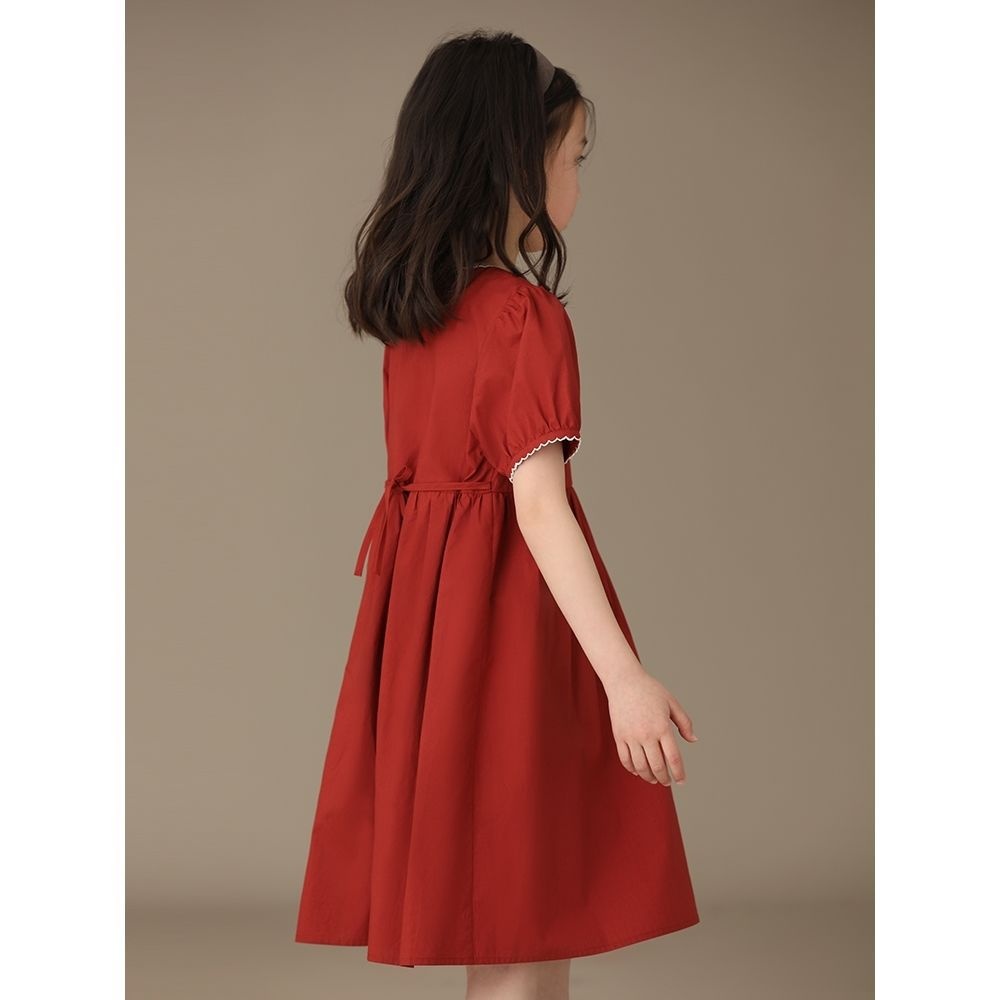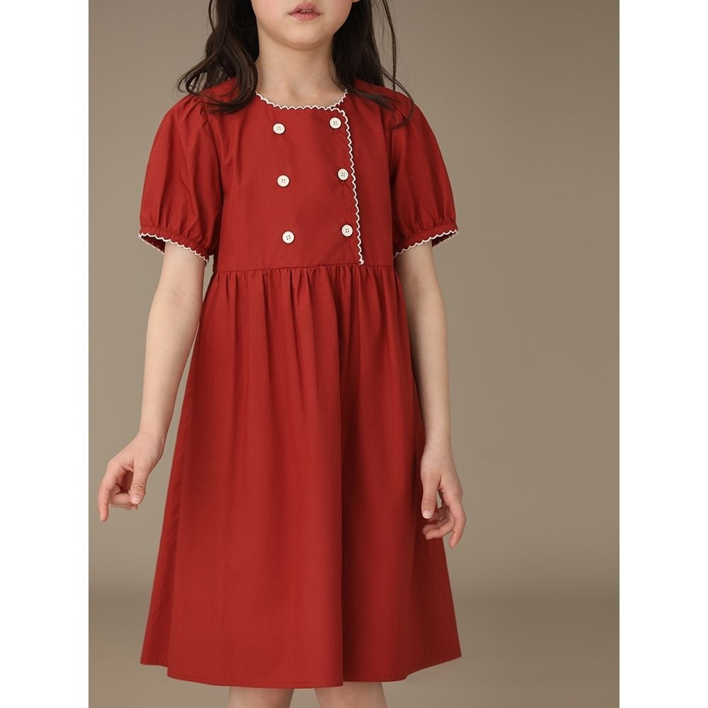 Children's Clothing Summer Arrival Girls Double-breasted Contrast Color Lace Collar Pure Cotton Princess Dress Loose And Stylish