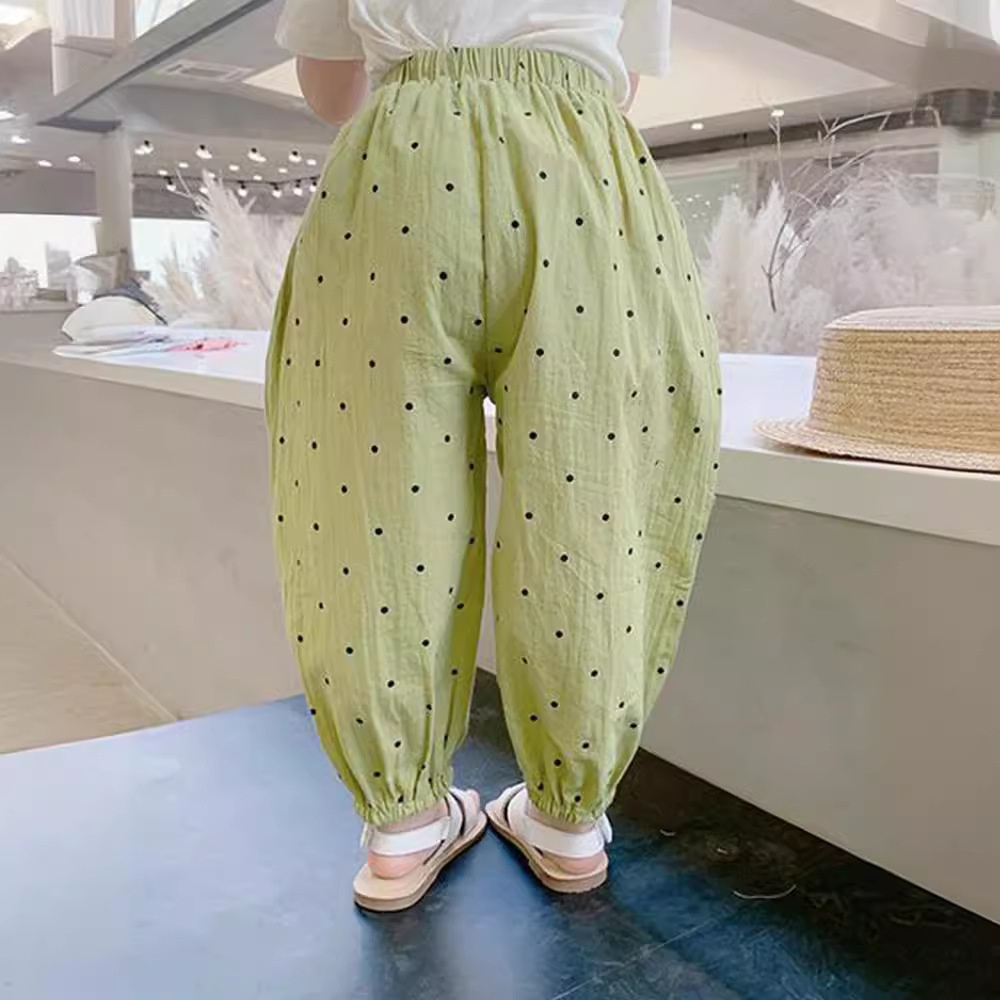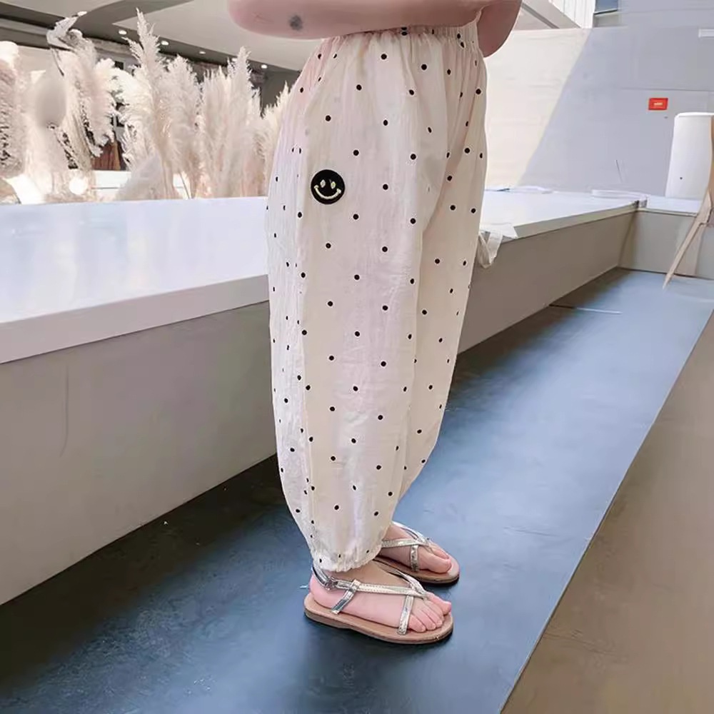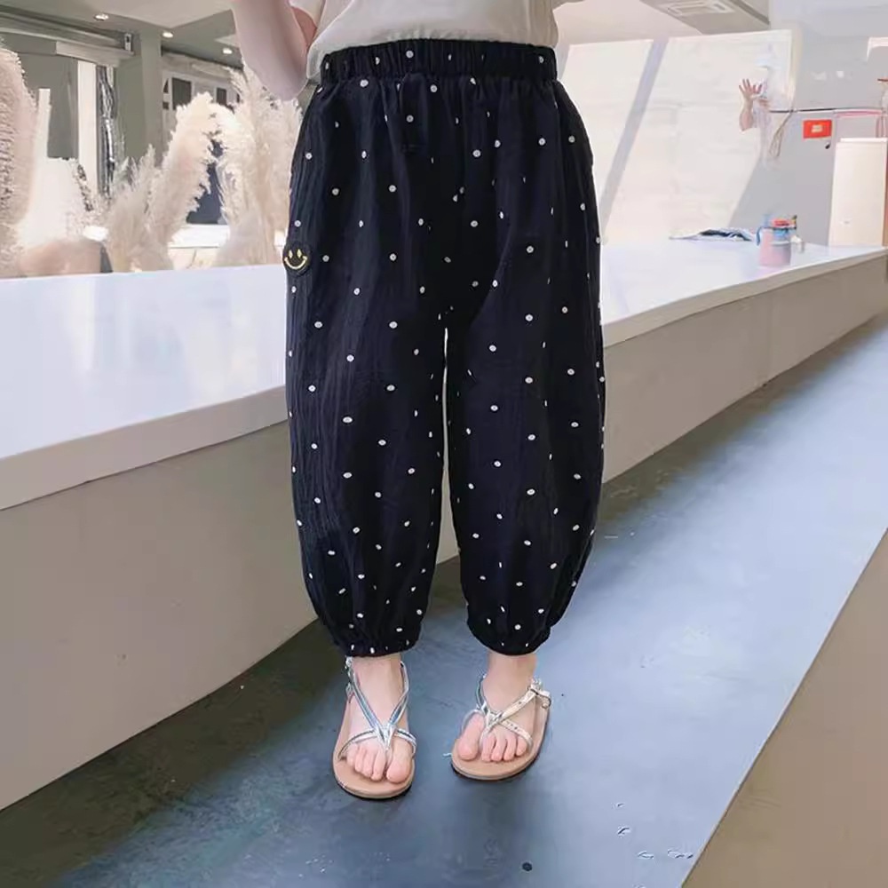 Pure Cotton Children's Clothing Loose Anti-mosquito Pants Girls Polka Dot Trousers Children's Closed Pants Small And Medium Children's Summer Clothing Style