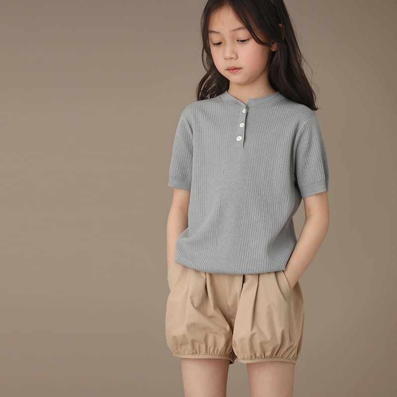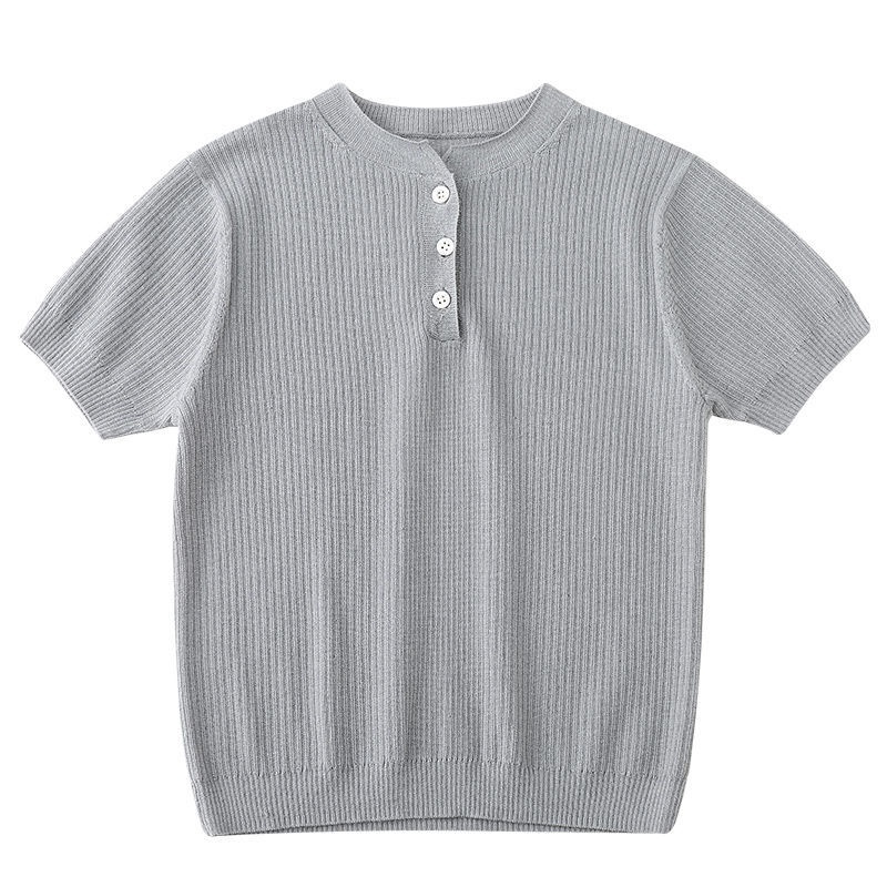 Children's Clothing Summer Style Girls Super Soft Simple Casual Temperament Ribbed Round Neck Knitted Short-sleeved Tops Boys Thin Style