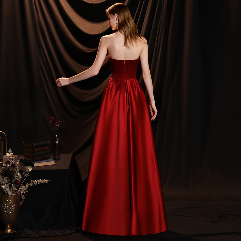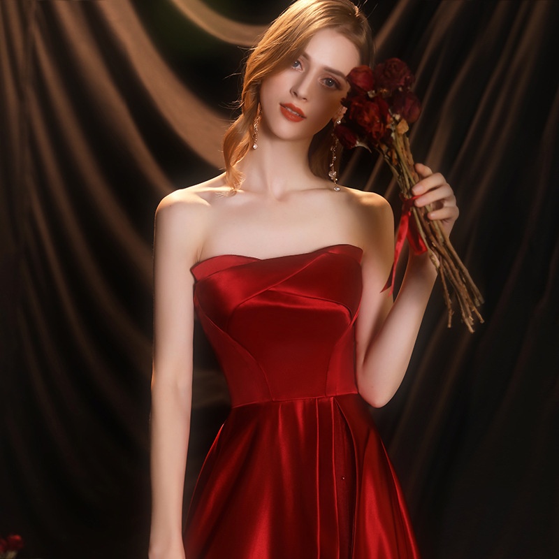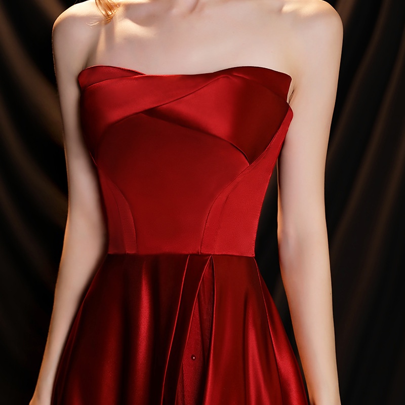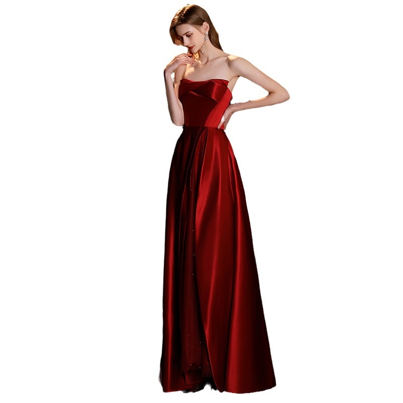 Toast Dress For Women Tube Top Textured Satin Celebrity Bride Wedding Banquet Atmospheric Evening Dress