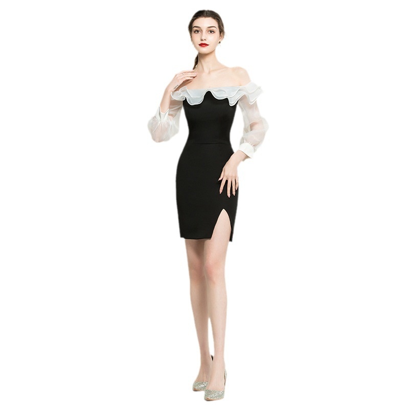 Black French Dress For Women Style Short Dress For Daily Wear One Shoulder Evening Dress Temperament Sexy