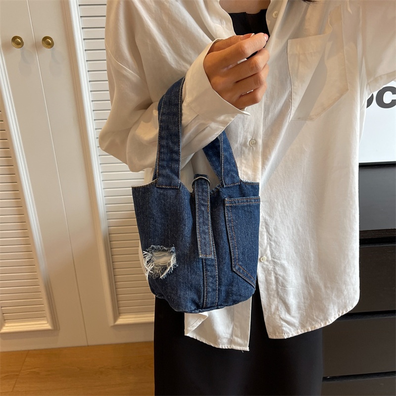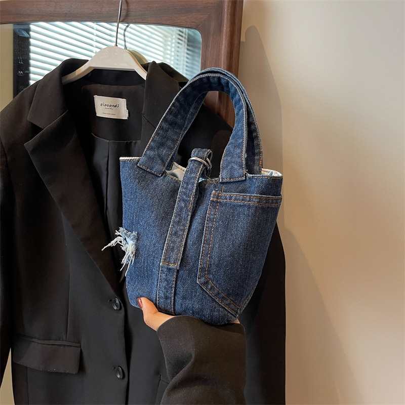 Bags For Women Popular Denim Retro Bucket Bag Niche Design Basket Hand-held Bucket Bag