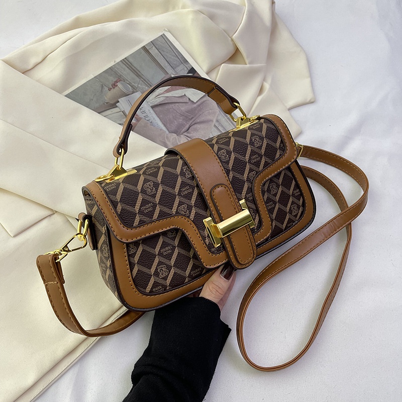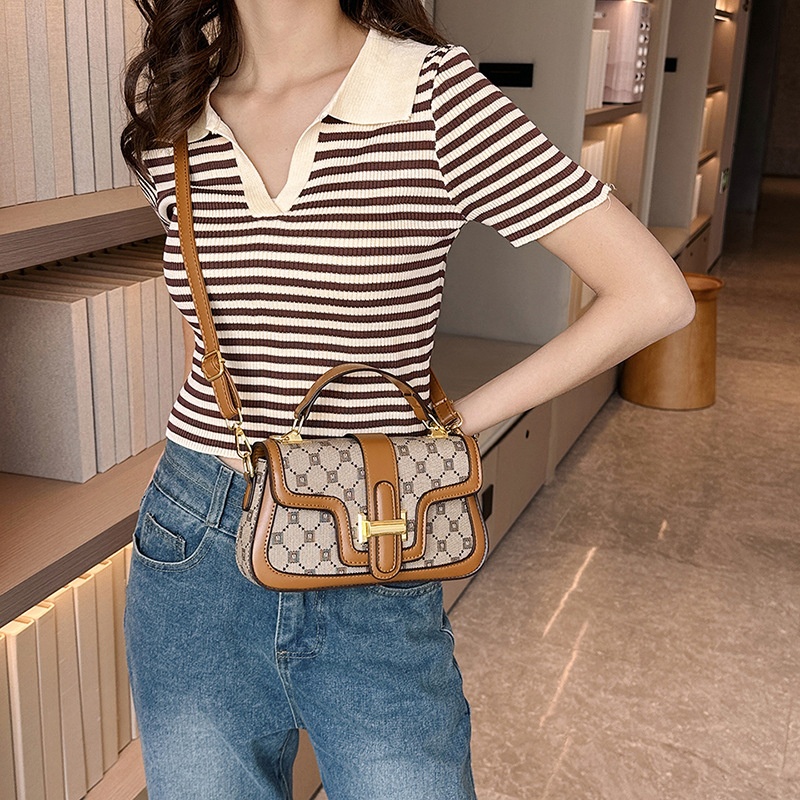 Women's Bag Fashion Printed Letter Hand-held Small Square Bag Femaley Fashionable High-end Shoulder Messenger Bag