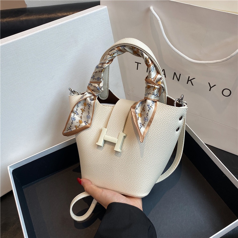 Niche Bags For Women High-end Portable Bucket Bags For Womeny And Fashionable Litchi Pattern Messenger Bag