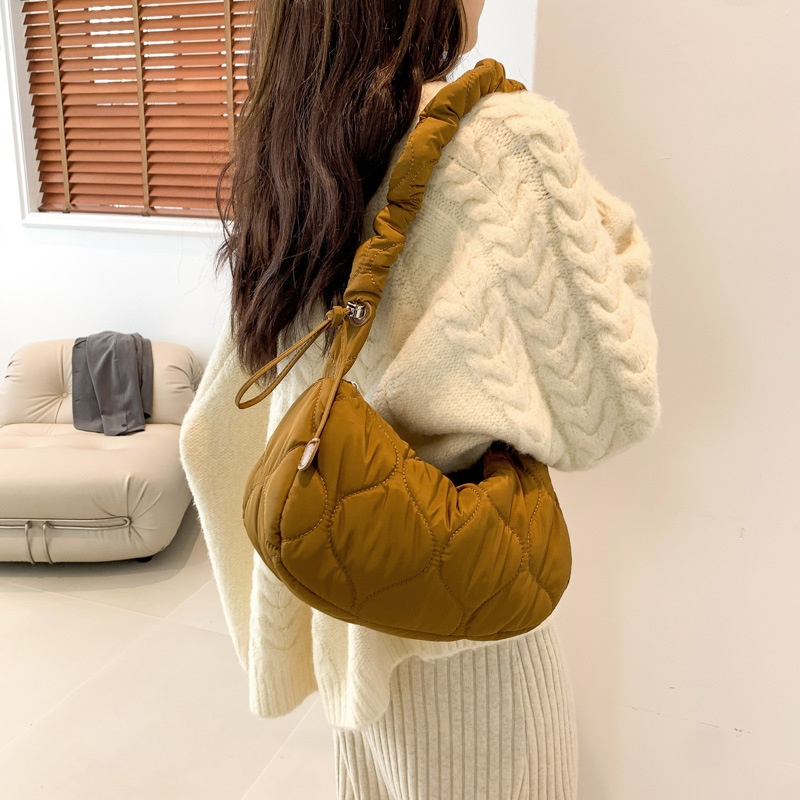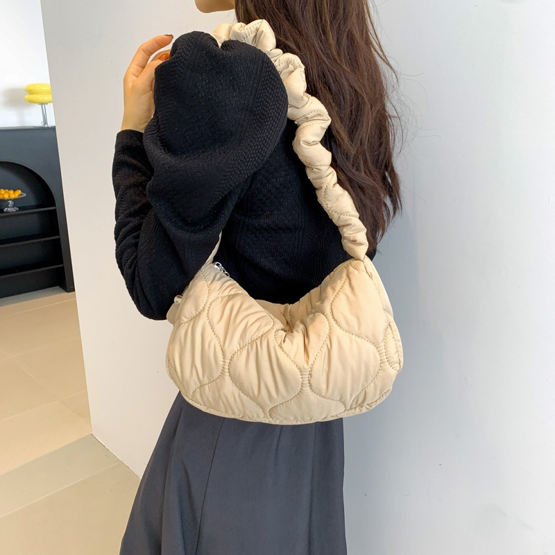 Internet Celebrity Temperament Versatile Cotton Coat Pleated Pillow Bag Female High-end Solid Color Shoulder Messenger Bag
