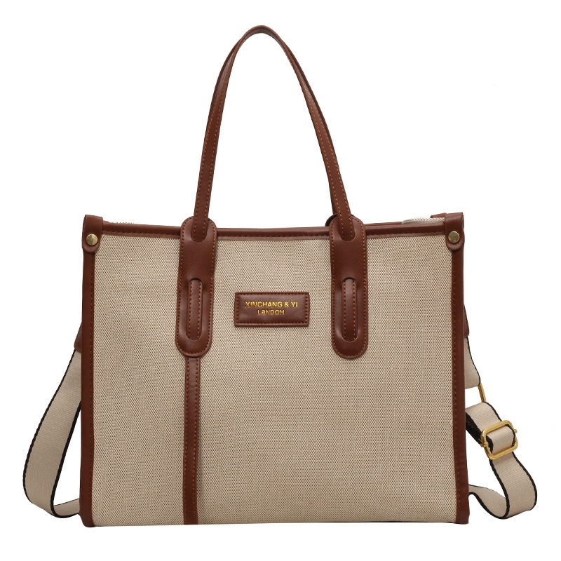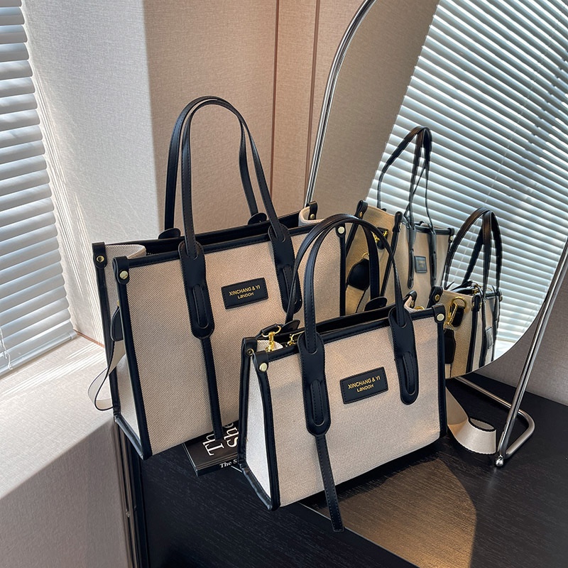 Large-capacity Handbag For Women Styley Canvas Contrast Color Tote Bag Daily Commuting Shoulder Messenger Bag