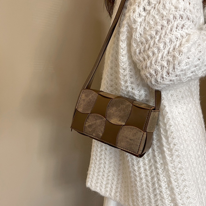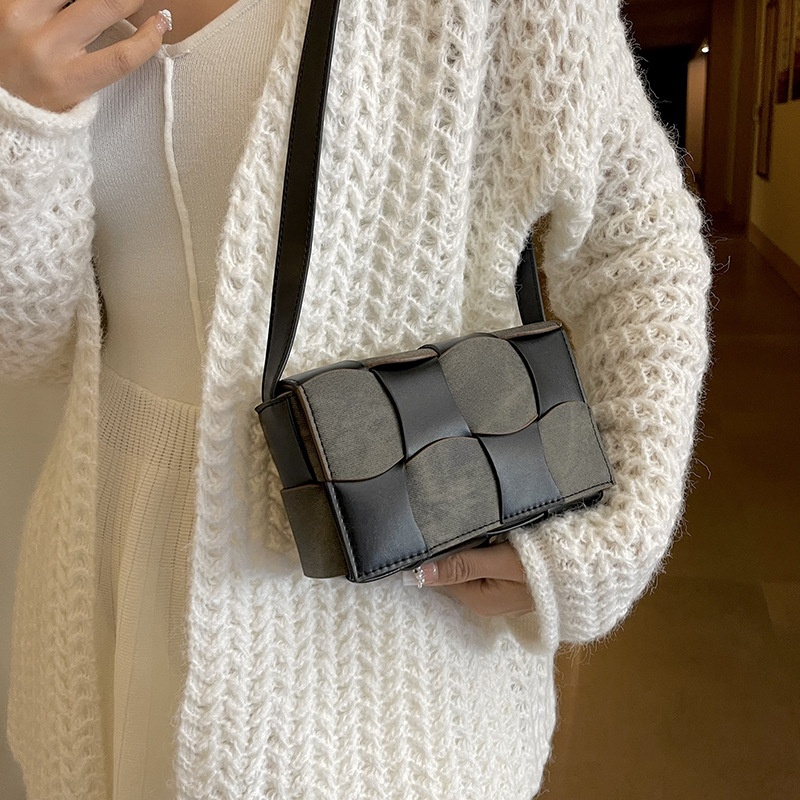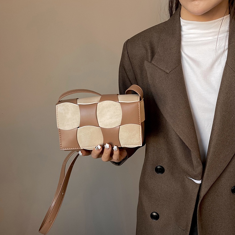 Xiaohongshu Woven Small Square Bag Femaley Hot Style Contrast Color Shoulder Messenger Bag
