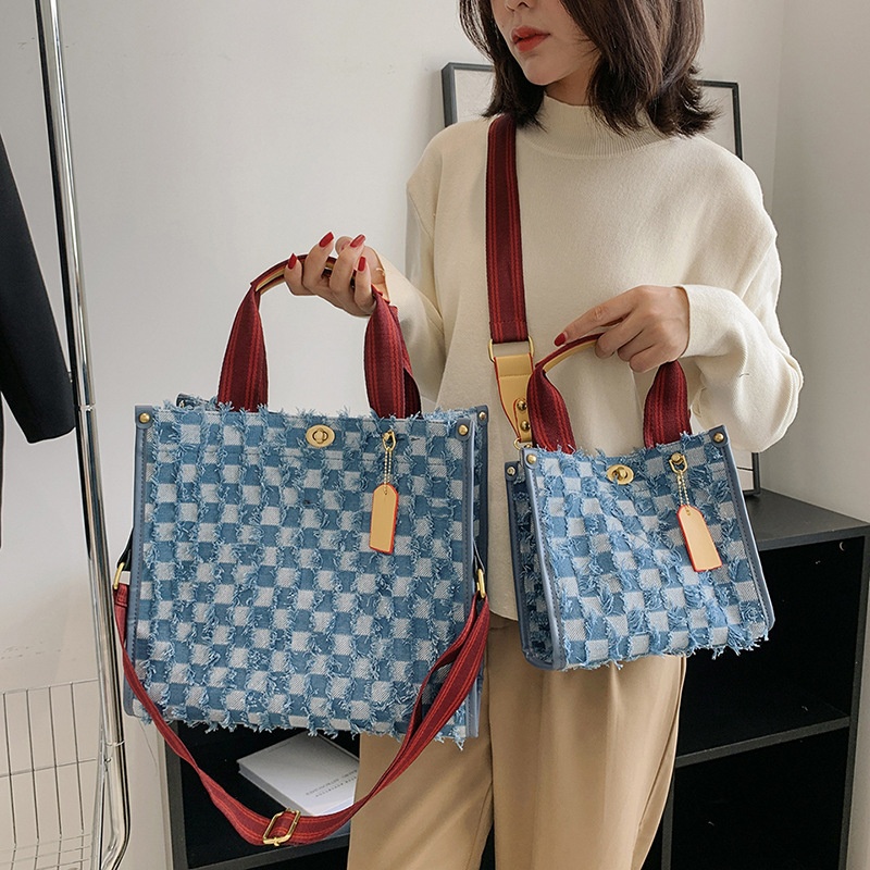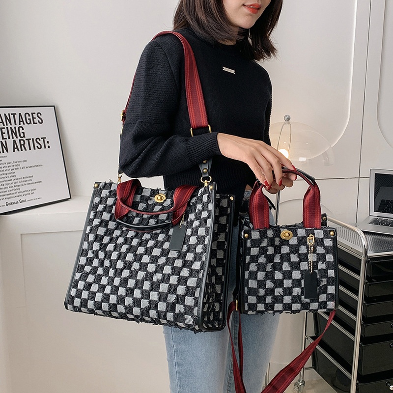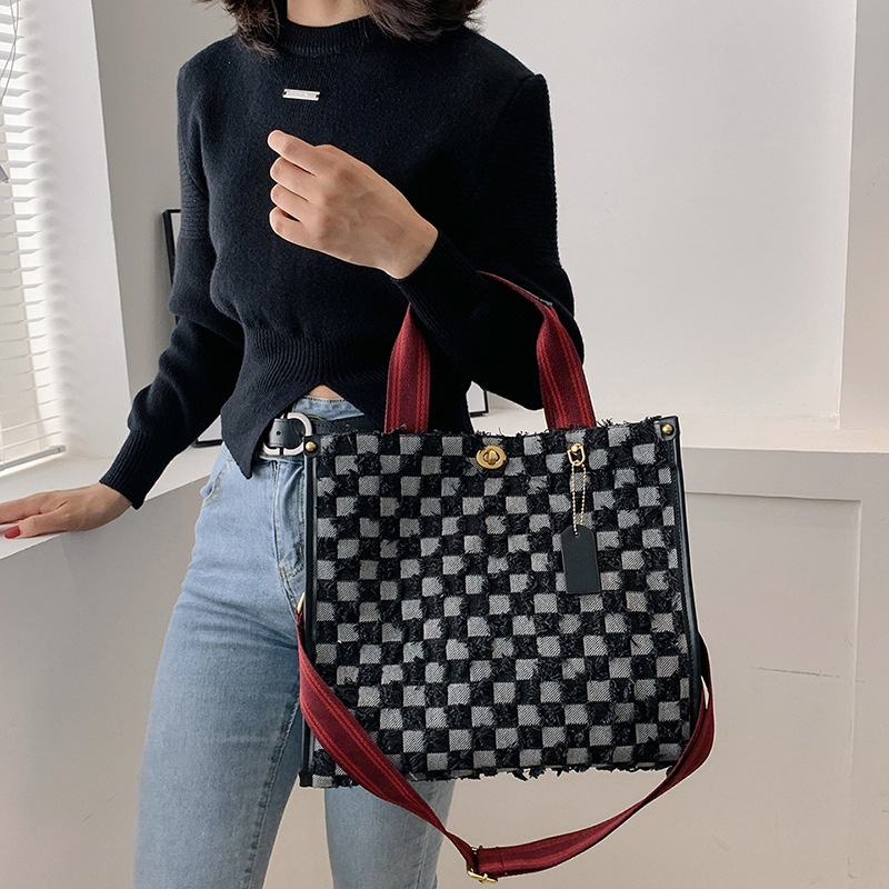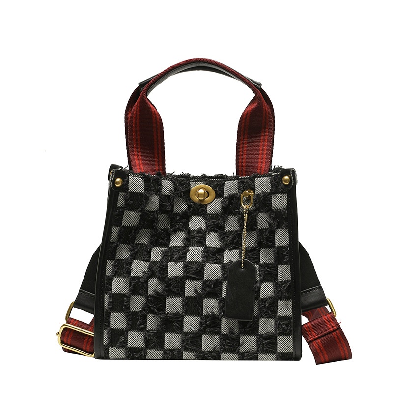 Canvas Women's Bag Fashion Tassel Plaid Hand-held Tote Bag Niche High-end Shoulder Messenger Bag
