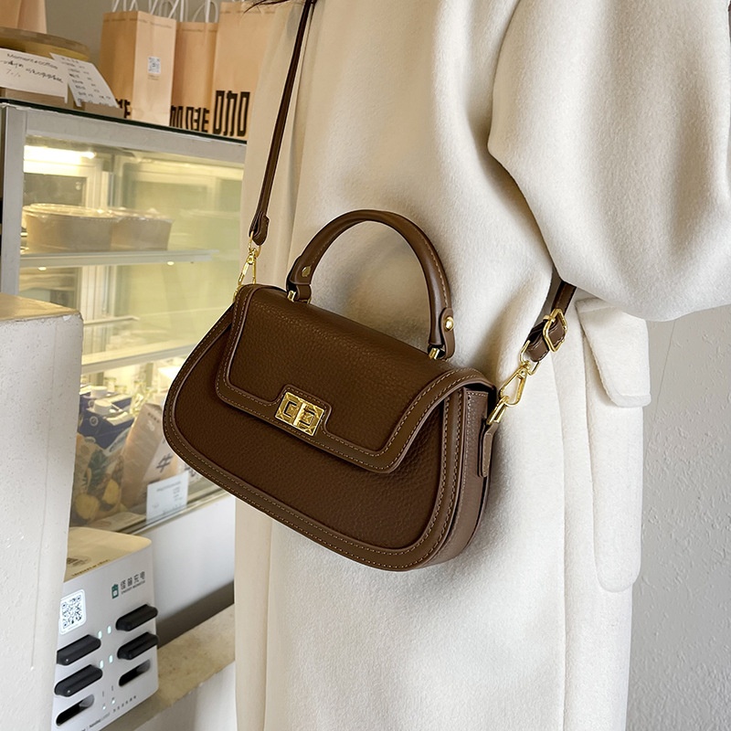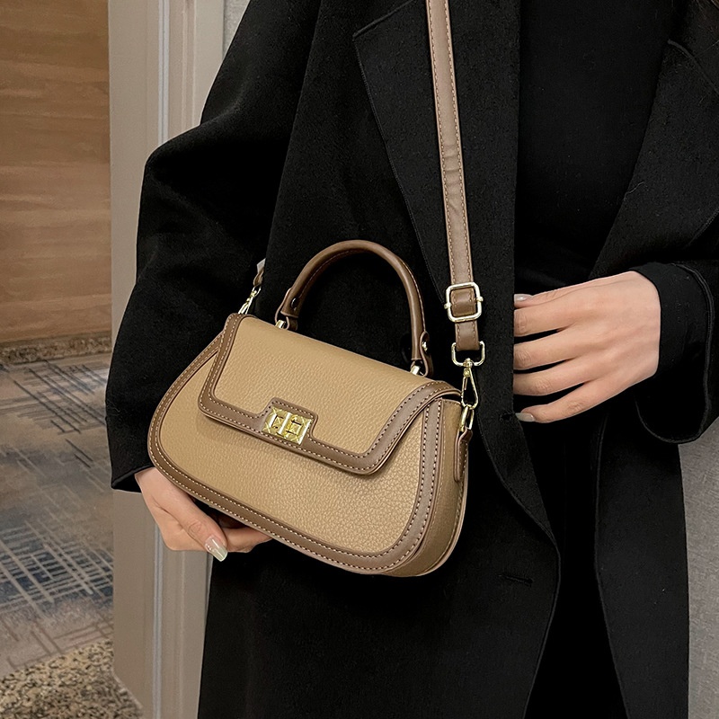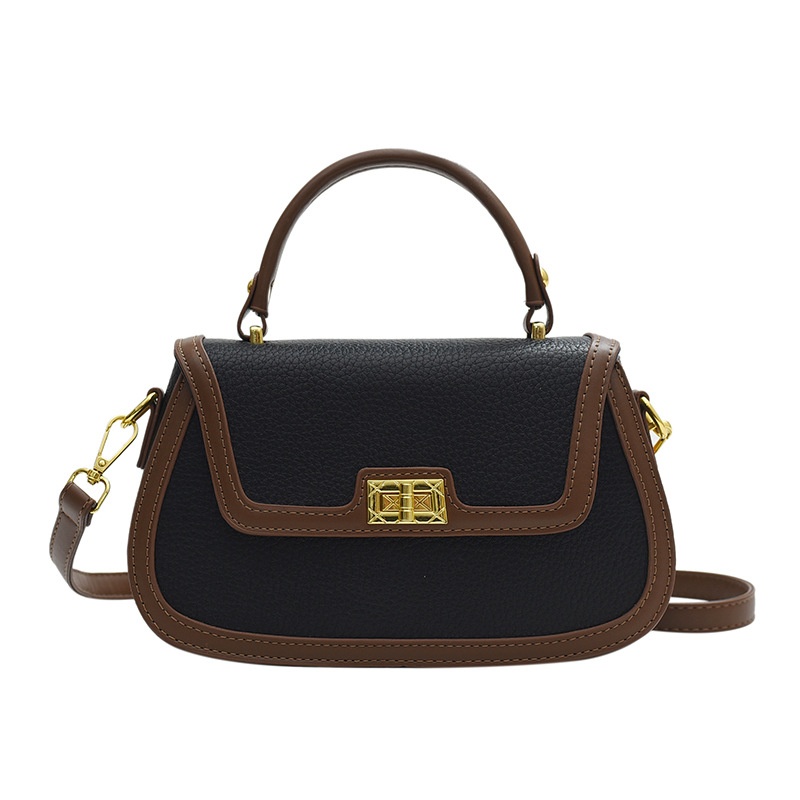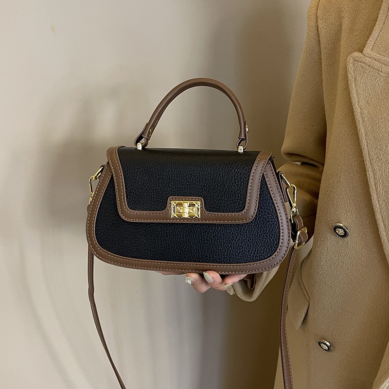 Contrast Color Hand-held Small Square Bag For Women European And American Retro Lock Multi-layer Pocket Shoulder Messenger Bag