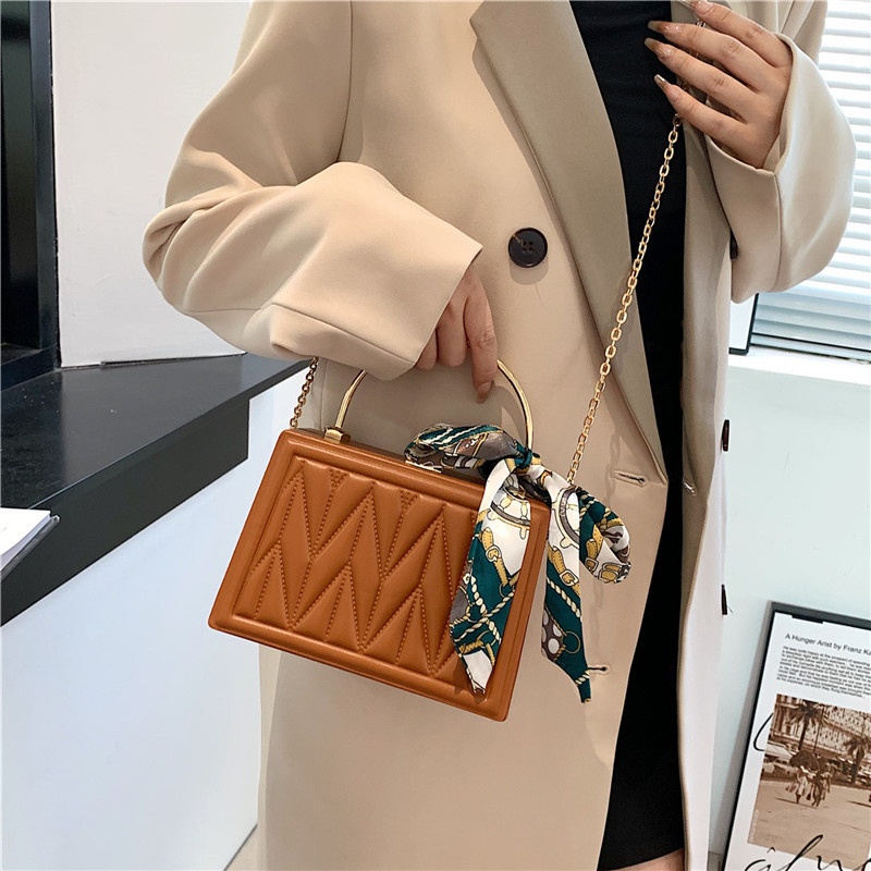 Foreign Trade Hand-held Box Small Square Bag Women Korean Fashion Diamond Chain Shoulder Messenger Bag