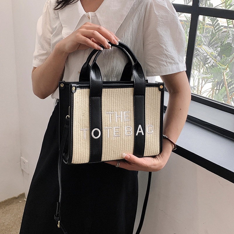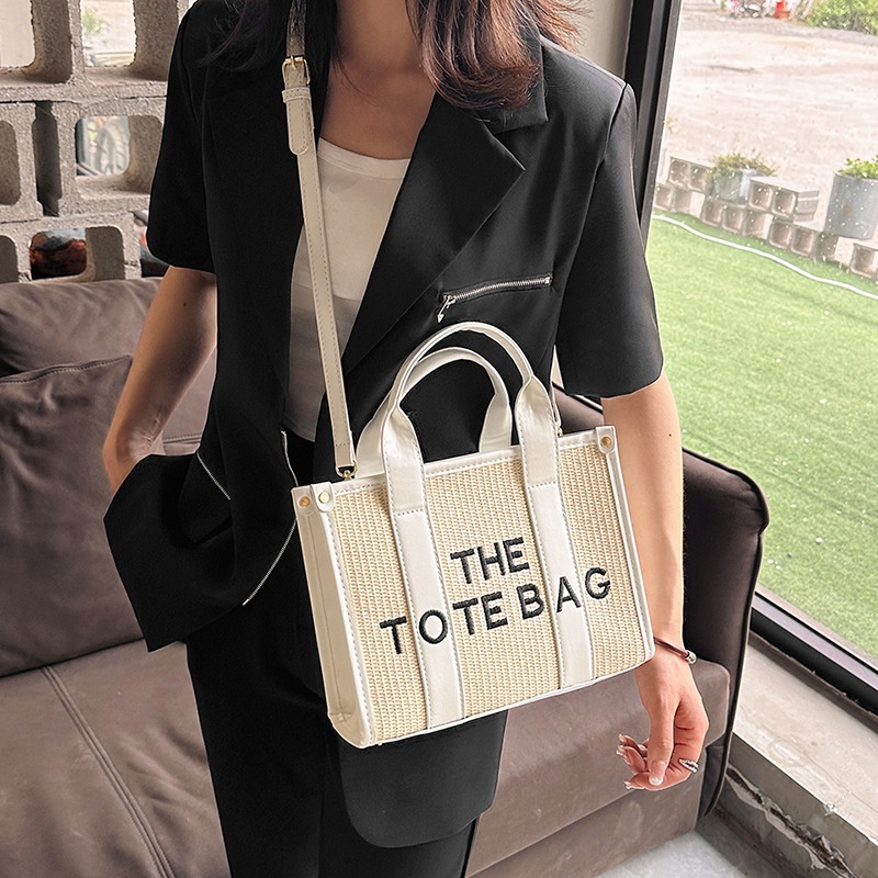 Woven Tote Bag Women Fashion Embroidered Letter Handbag Niche Textured Shoulder Messenger Bag