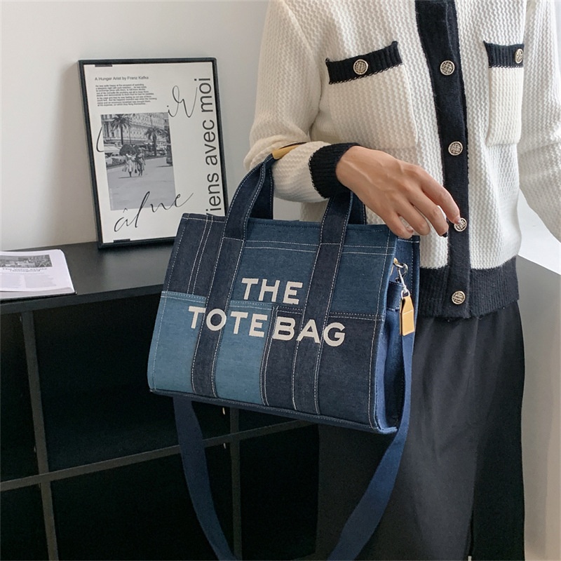 Denim Bag Women Fashion Retro Handbag Niche Stitching Embroidery Letter Shoulder Messenger Bag