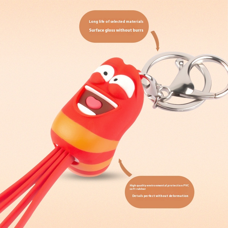 Hilarious Bug Keychain Doll Charging Cable,Stink Bug Three-in-one Mobile Phone Cartoon Data Cable