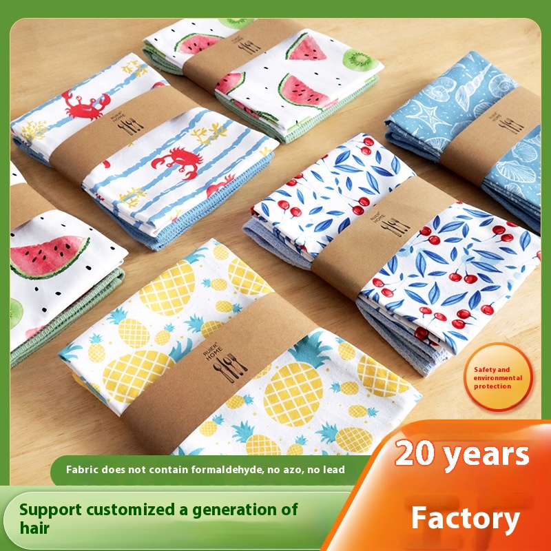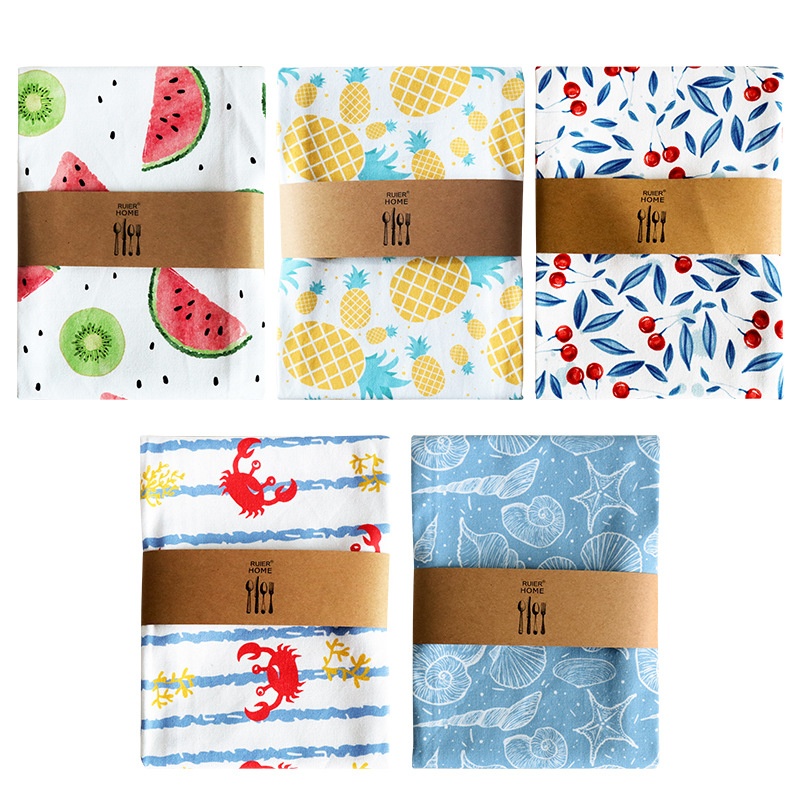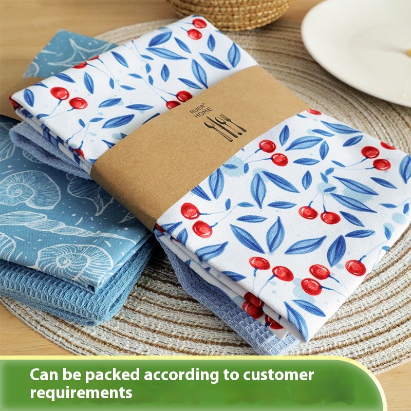 Pure Cotton Cloth Tea Towel Printed Napkin Plus Plain Waffle Two Sets