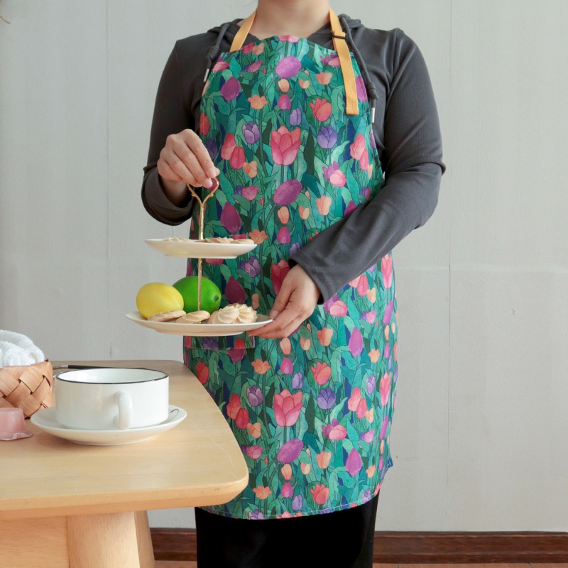 Apron Waterproof Apron Style Polyester Printed Apron Home Kitchen Oil-proof Apron