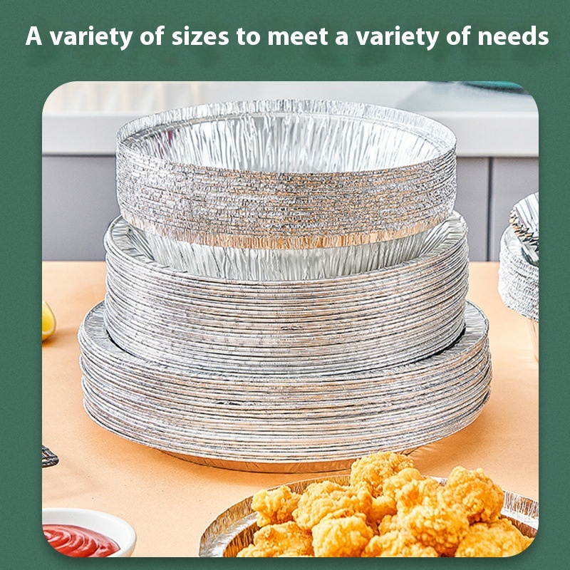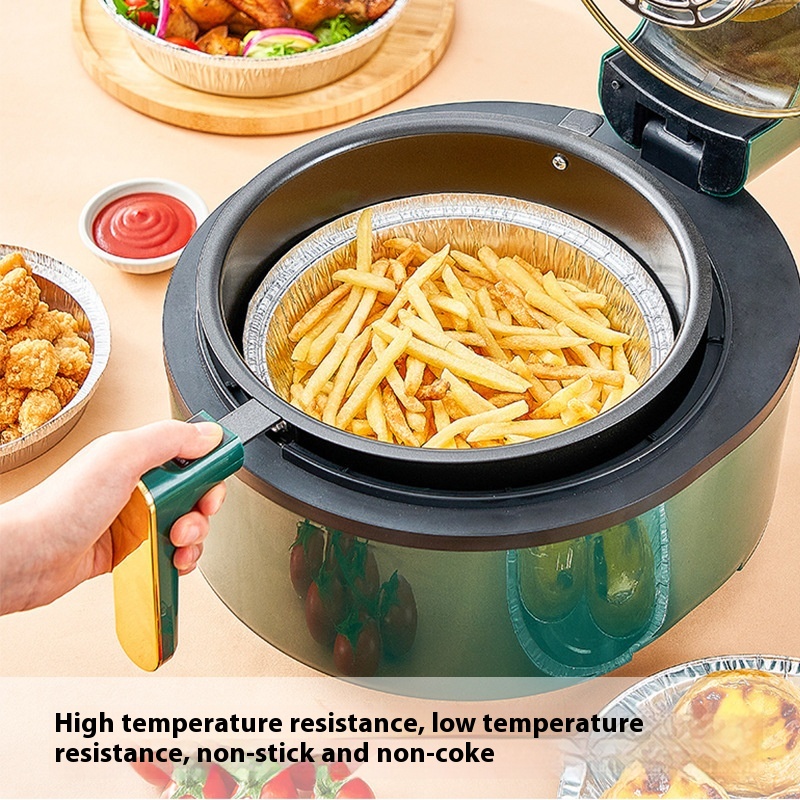 Household Air Fryer Tin Foil Tray Round Thick Barbecue Disposable Tin Foil Box High Temperature Oven Resistant Aluminum Foil Lunch Box