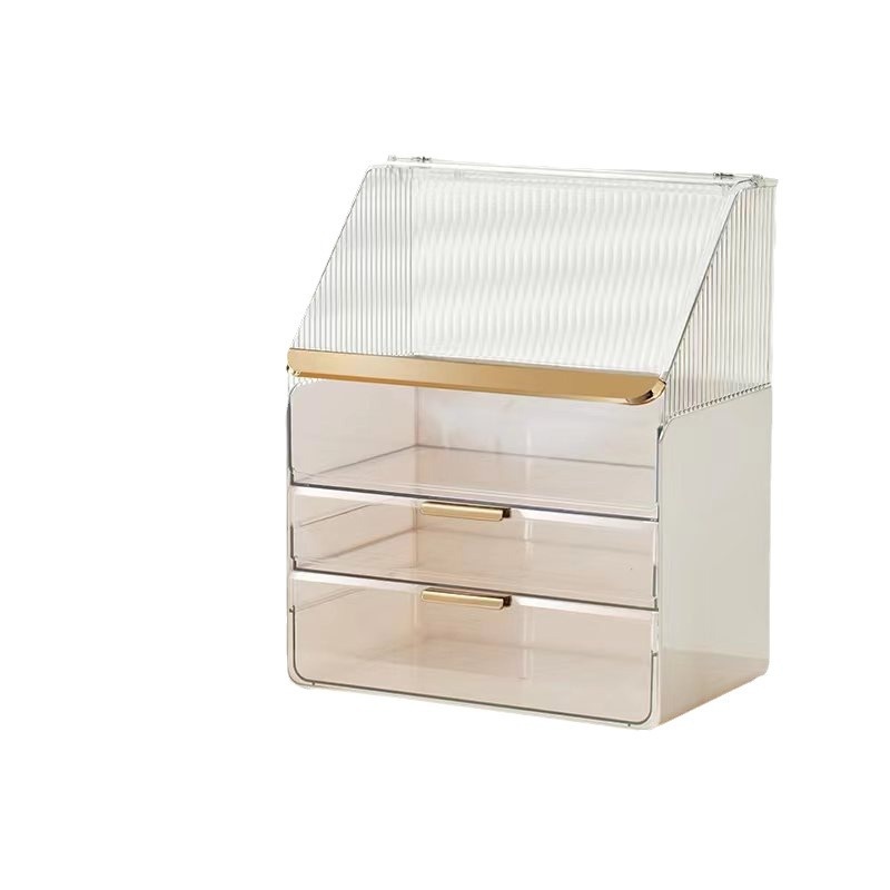 PETHigh-value Cosmetic Box Desktop Dustproof Large-capacity Multi-layer Semi-transparent Cosmetic Light Luxury Storage Box With Lid
