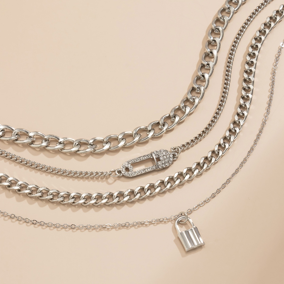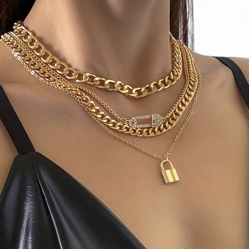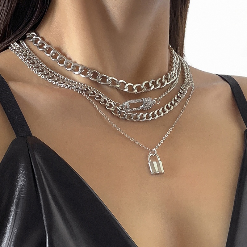 European And American Jewelry Hip-hop Diamond Pin Lock Necklace Female Simple Metal Chain Clavicle Necklace