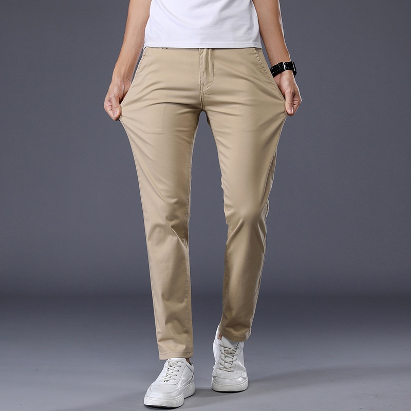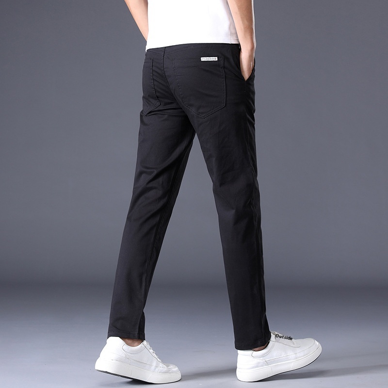 Spring Men's Black Casual Pants Korean Styley Small Straight Trousers Men's Elastic Versatile Slim Pants