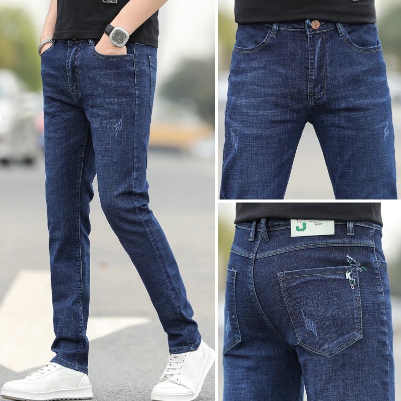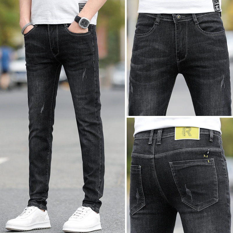 One Piece Drop Shipping8913 Popular Men's Gray Jeans Korean Style Fashion Mid-waist Elastic Skinny Long Pants