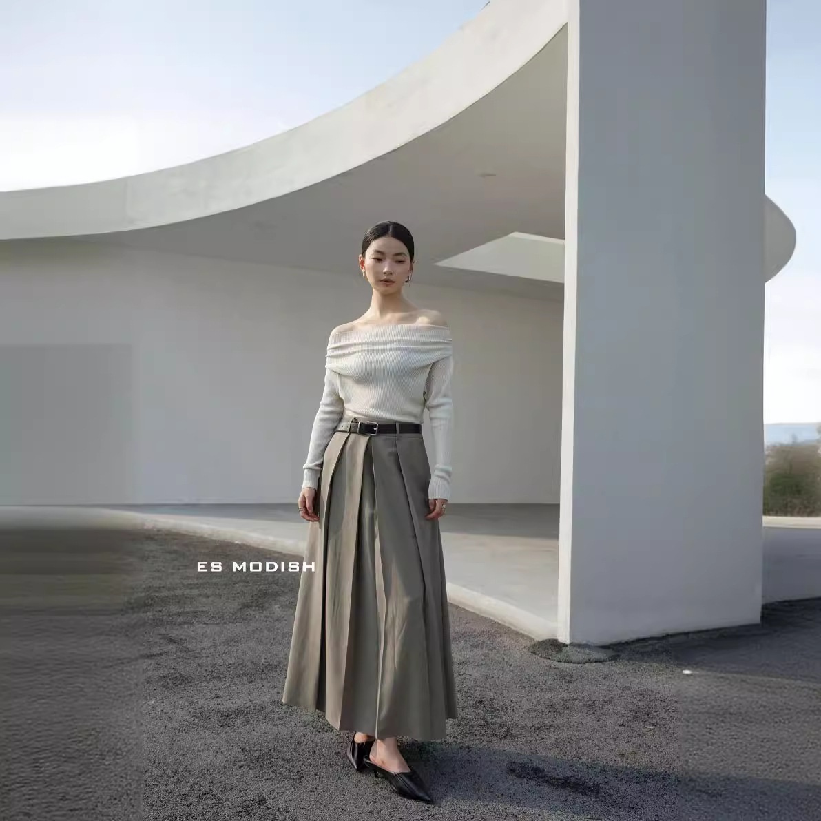 French One Shoulder Tencel Knit Sweater Women's Off Shoulder Slim Fit Outerwear Tops For Girls