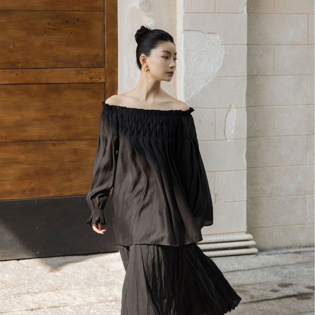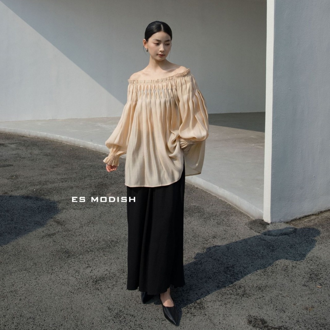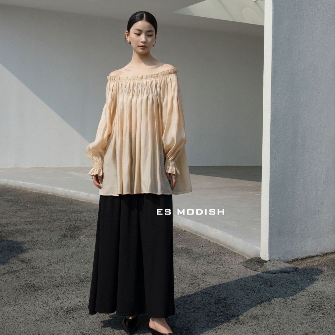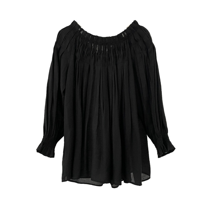 Spring Arrival Celebrity Style One-shoulder Pleated Pullover Long-sleeved Top Sweet Loose Women's Clothing