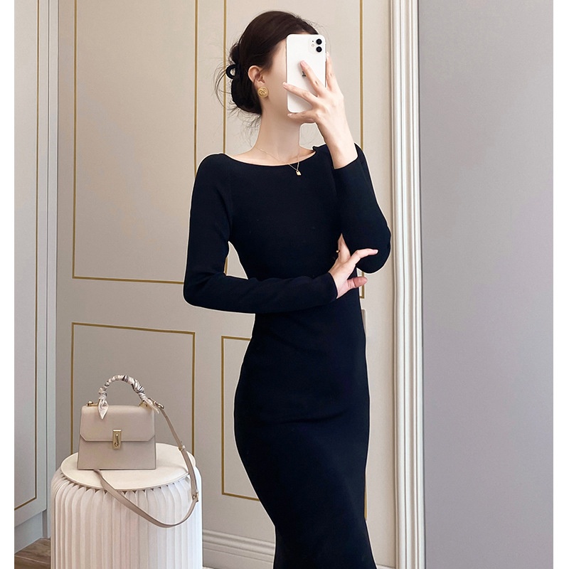 Fashion ALcos Style Early Spring Slim Fit Long Dress One-shoulder Collar Knitted Skirt For Dery