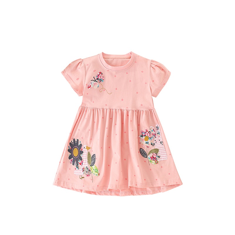 Malwee Girls Dress Summer Small And Medium Children's Short Sleeve European And American Style Round Neck Children's Dress Princess Dress