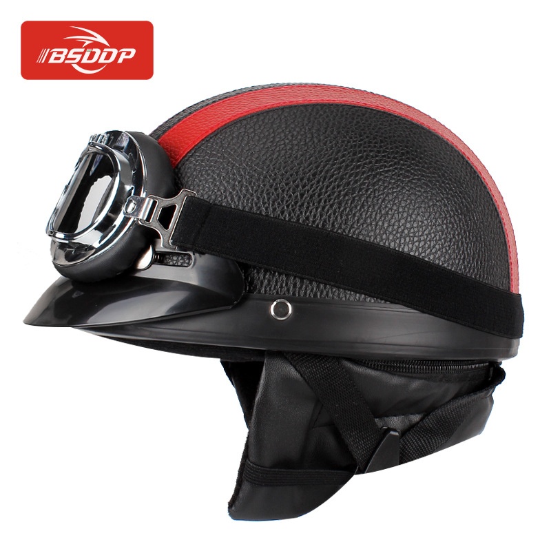 BSDDPMotorcycle Harley PUHelmet With Goggles Summer Sunshade Breathable Men And Women Riding Half Helmet