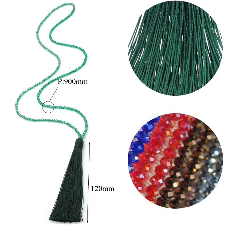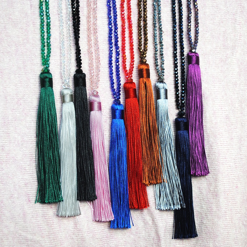 10 Colored Velvet Silk Pendant Crystal Beaded Necklace Tassel Sweater Chain Women's European And American Handmade Long Necklace Jewelry