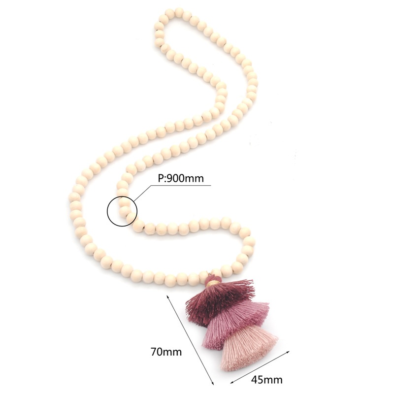 Colorful Three-layer Rope Tassel Skirt Tassel Necklace Handmade Beige Wooden Beads Long Sweater Necklace For Women9 Colors