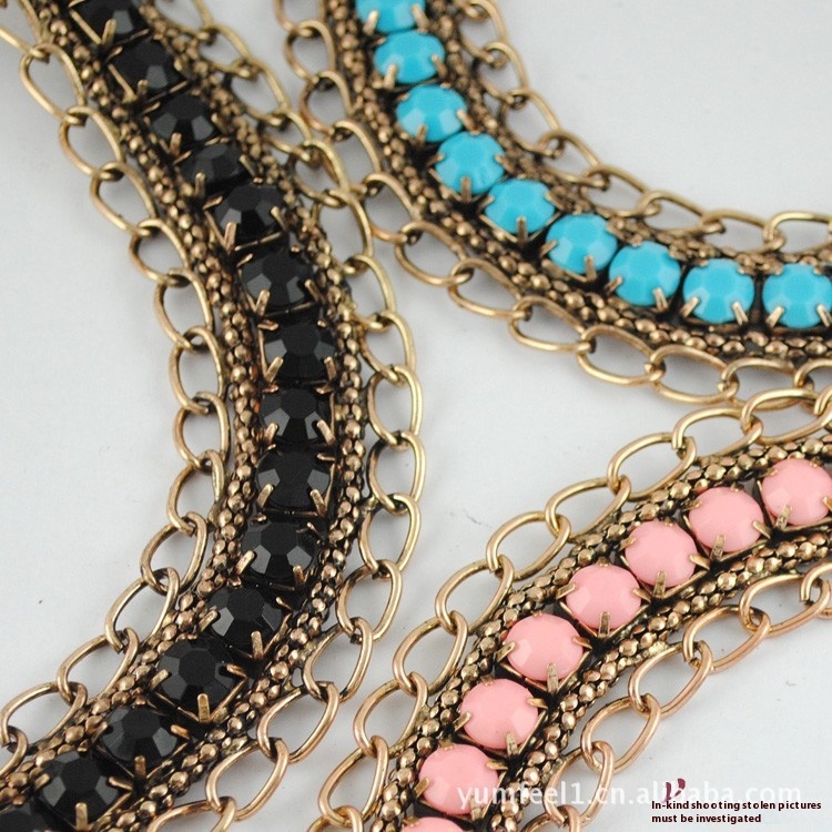 Yiwu Jewelry Fashion Retro Necklace Chain Edge Beaded Wide Edge Necklace N1537