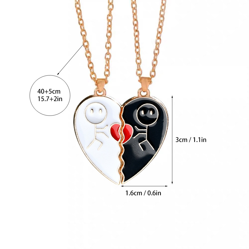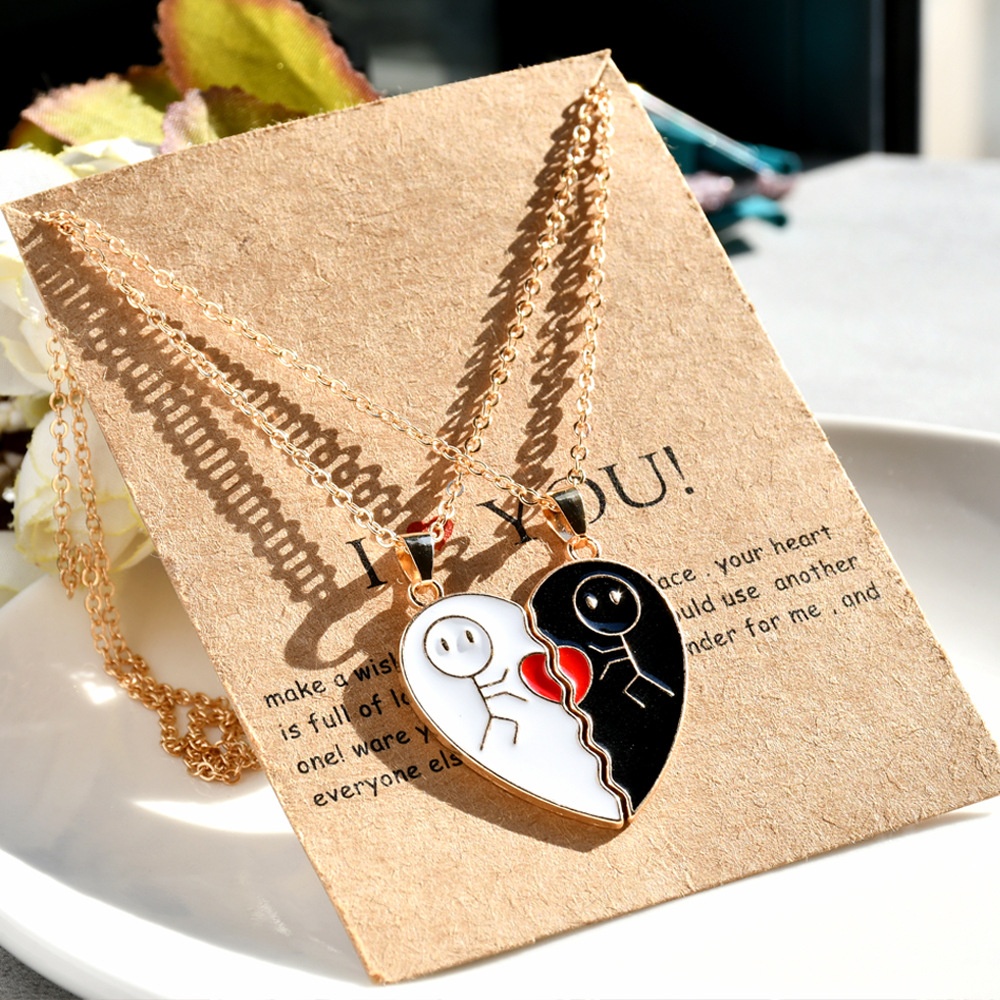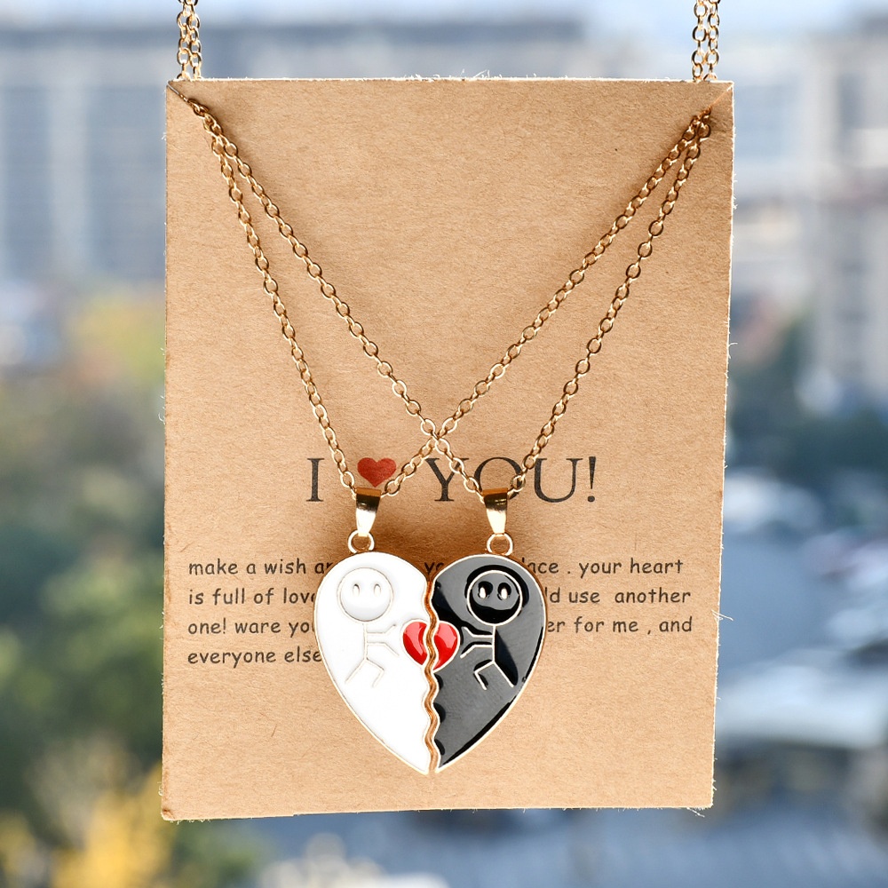 European And American Fashion Personality Heart-shaped Oil Drop Pendant Couple Splicing Love Necklace With Card Valentine's Day Gift