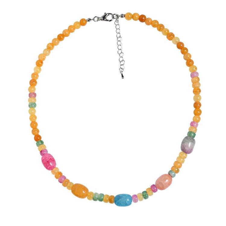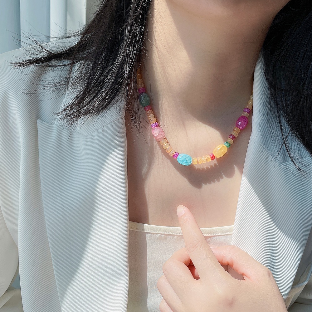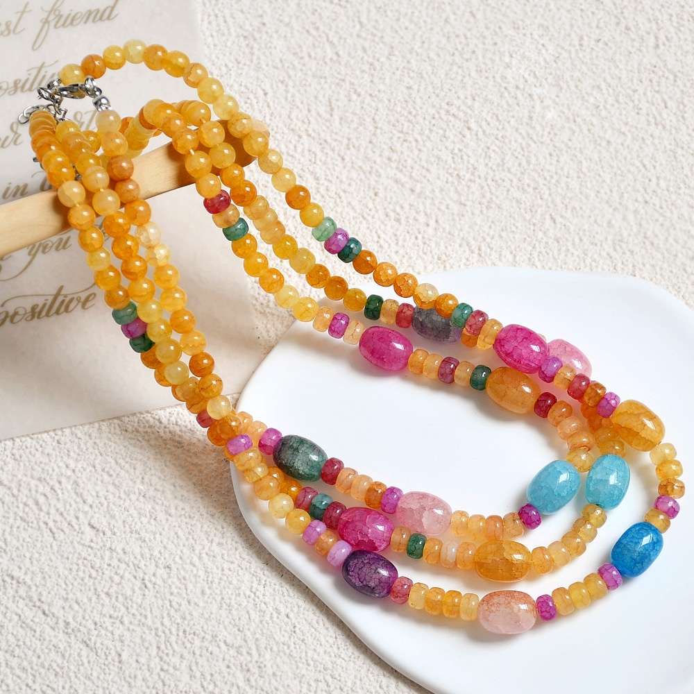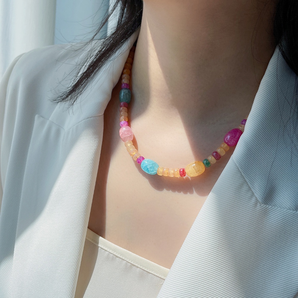 Autumn And Winter Colorful Beaded Cracked Crystal Necklace Female Niche Fairy Temperament Burst Stone Sweater Necklace